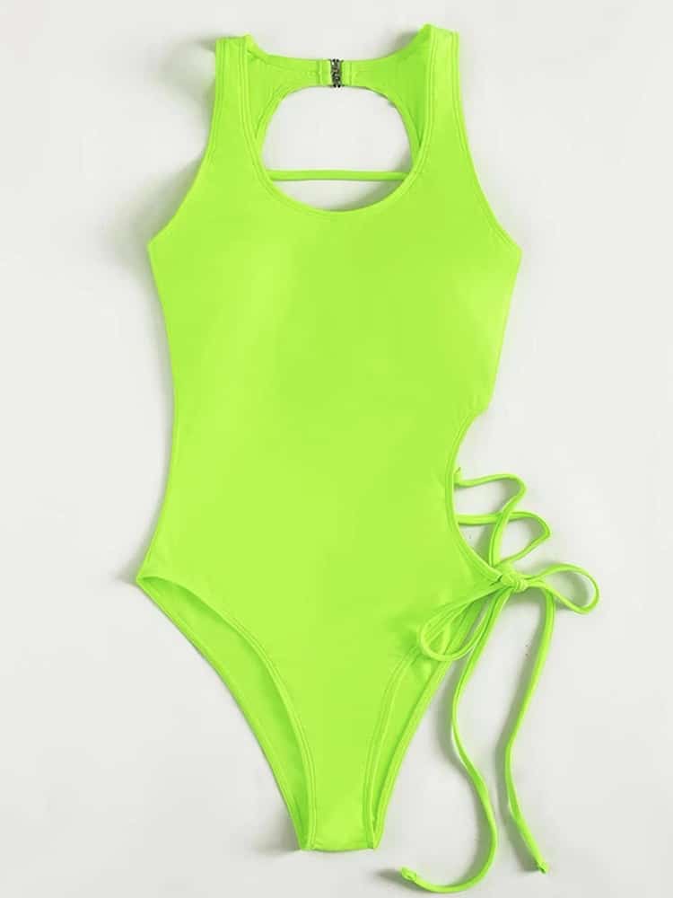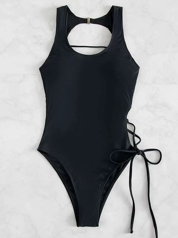 בגד ים שלם בעל מפתח גב עם שרוכים מעוצב