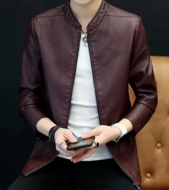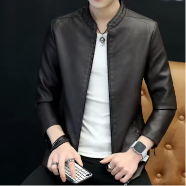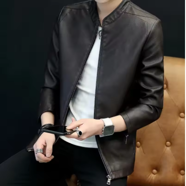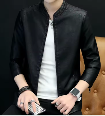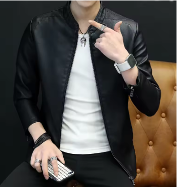 ג’קט עור צמוד לגברים עם צווארון עומד (משלוח חינם)