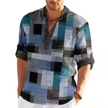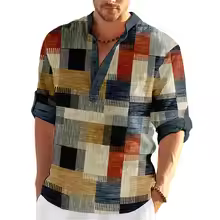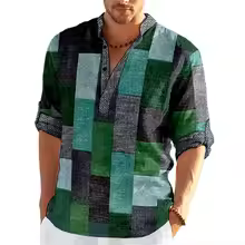 חולצות הנלי צבעים עם הדפס 3D לגברים בסגנון וינטאג’ (משלוח חינם)