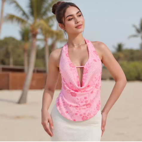 חולצת חוף עמוקה בצורת V לנשים (משלוח חינם)