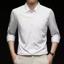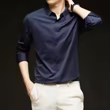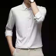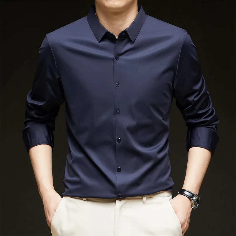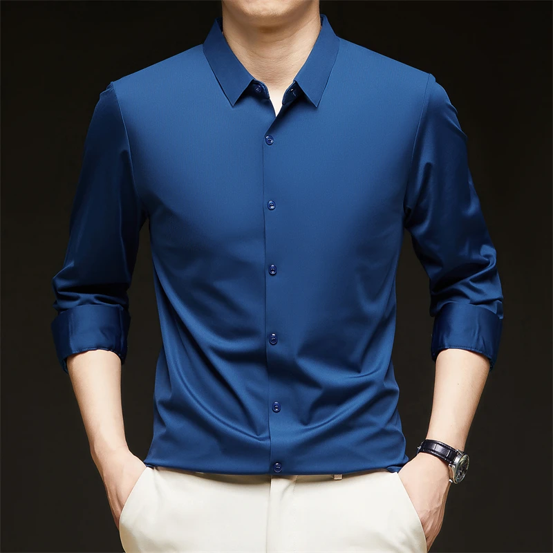 חולצת גברים לעסקים עם שרוולים ארוכים בצבע אחיד (משלוח חינם)