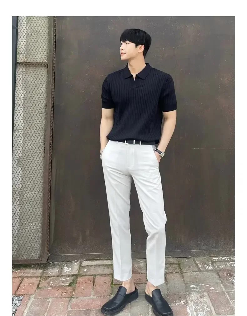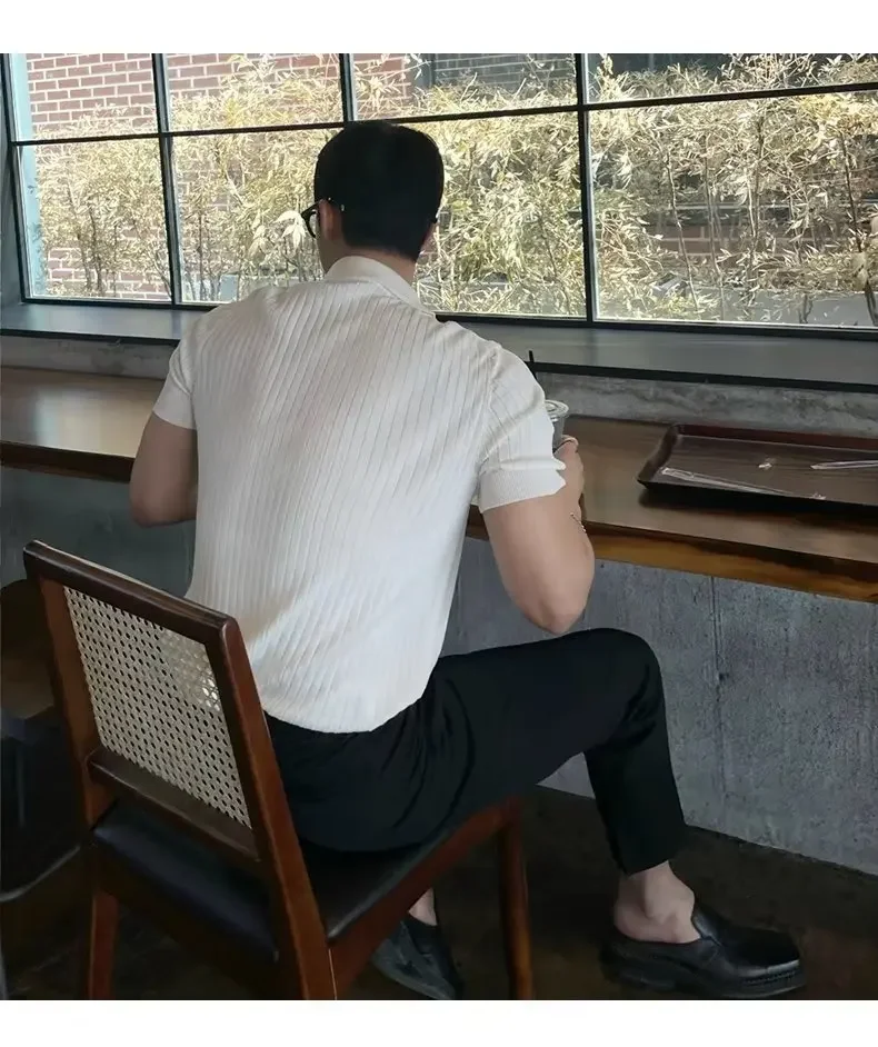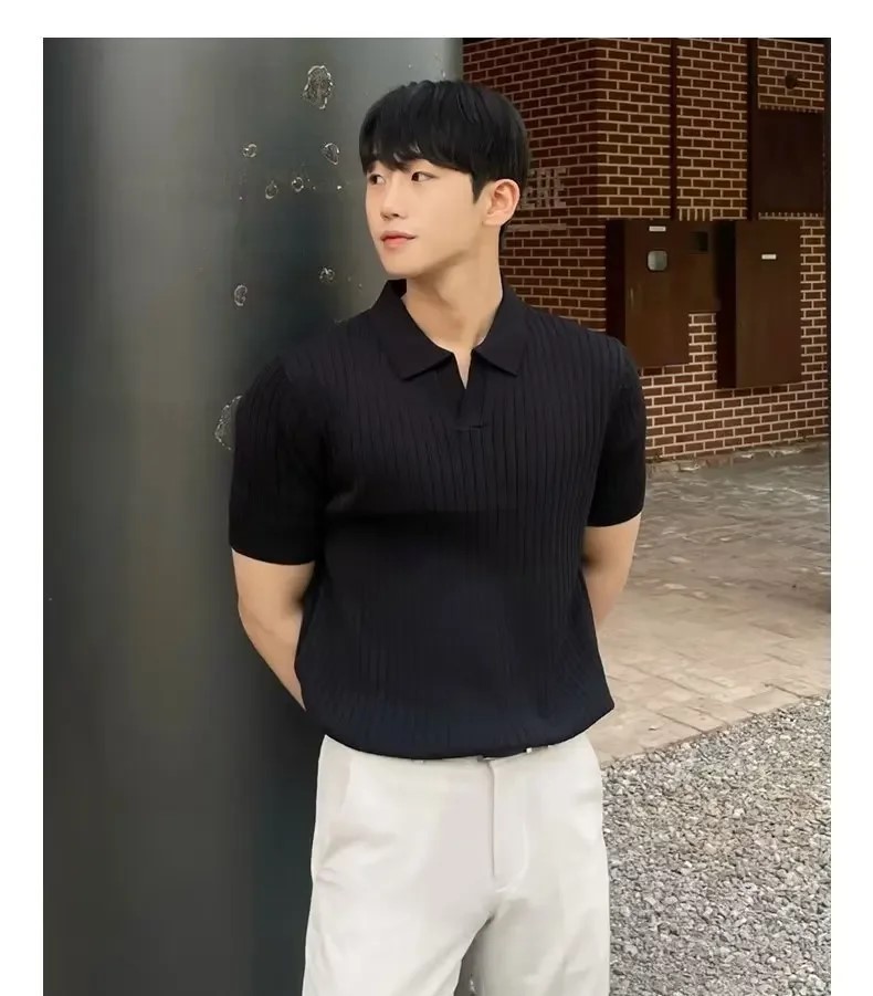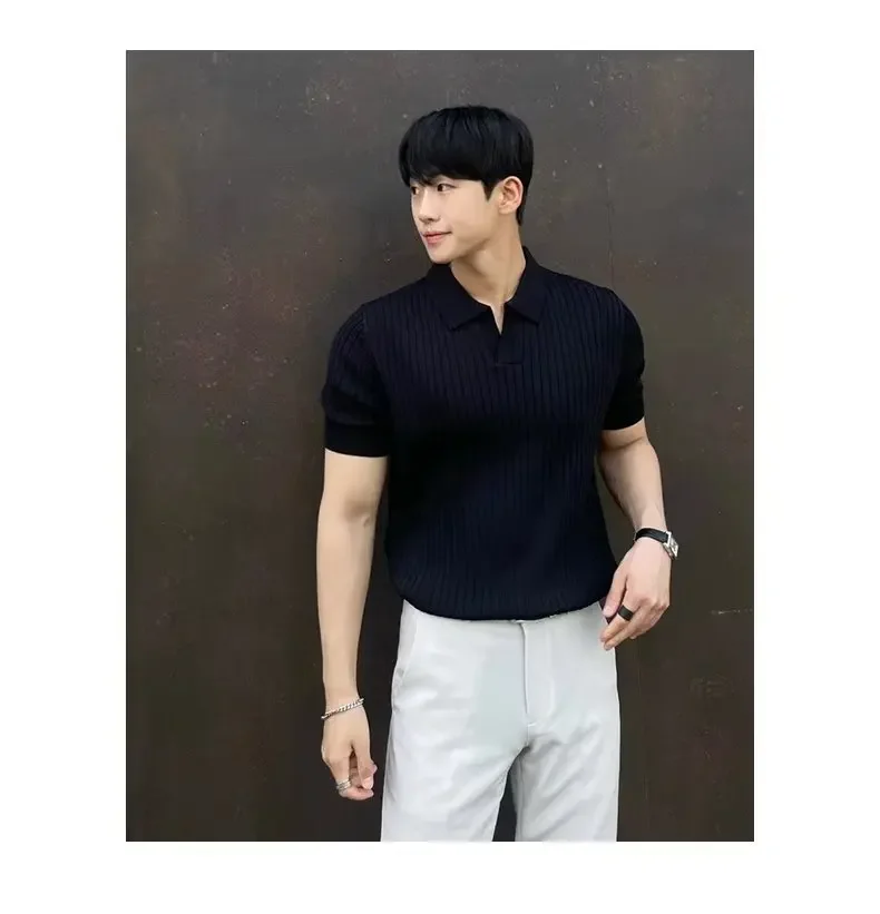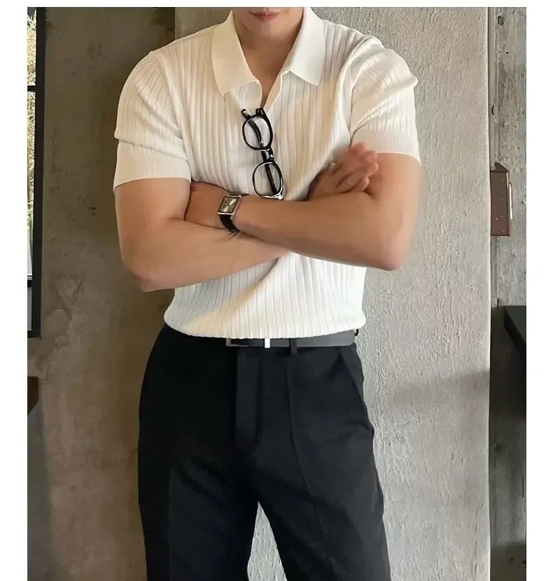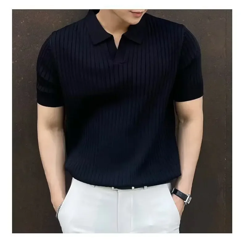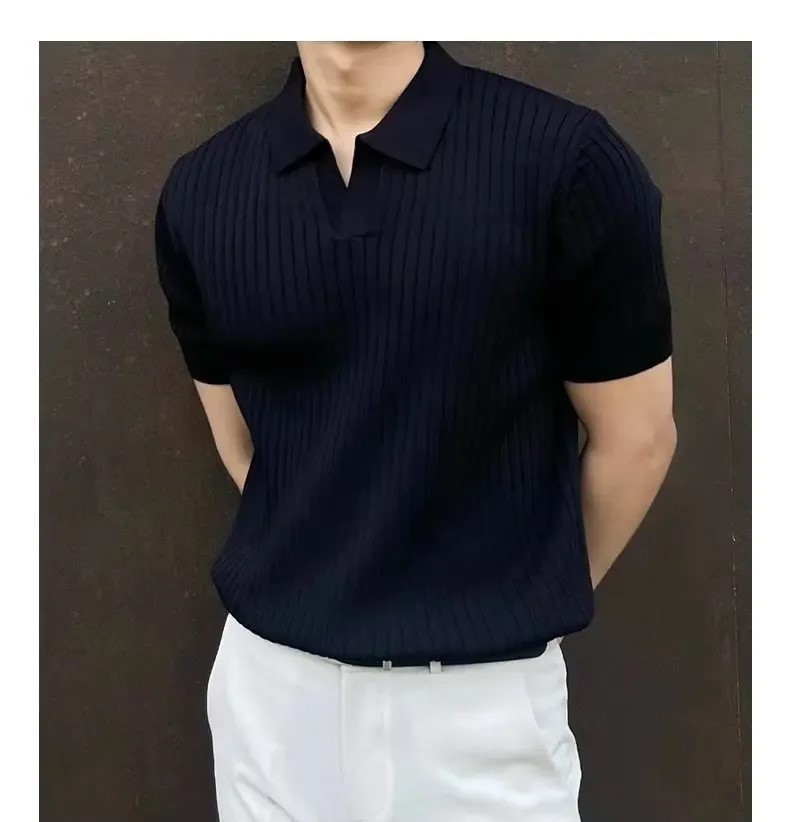 חולצת גברים מסוגננת עם שרוולים קצרים וצווארון V דק (משלוח חינם)