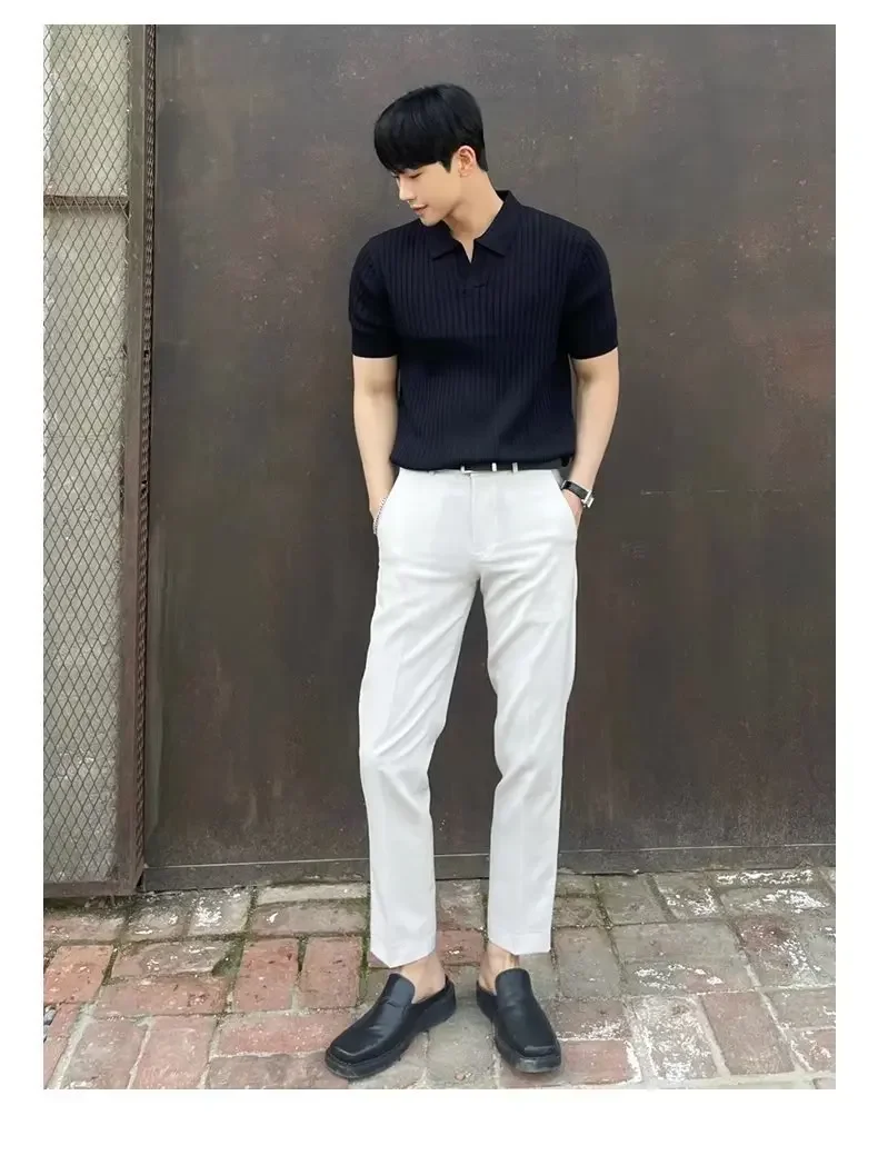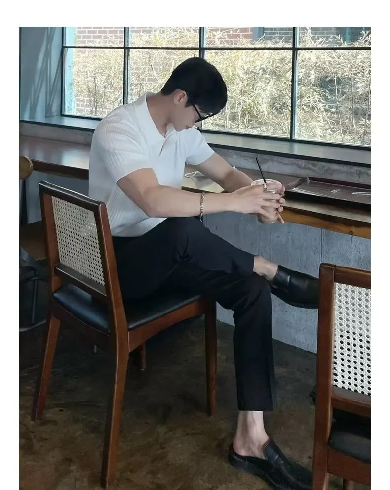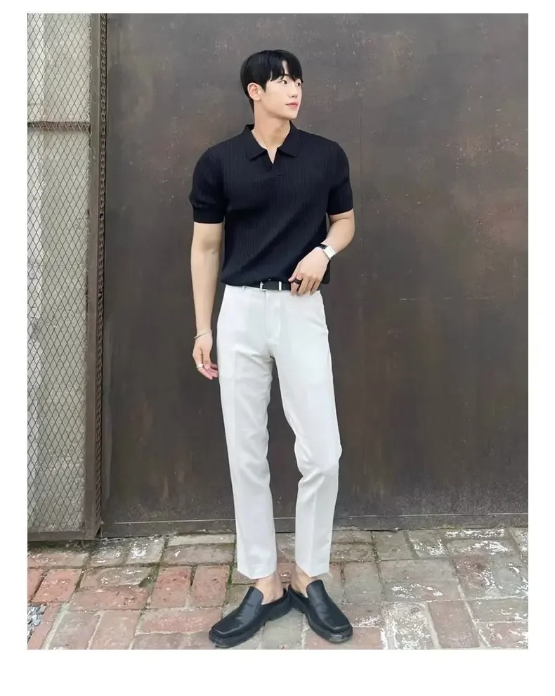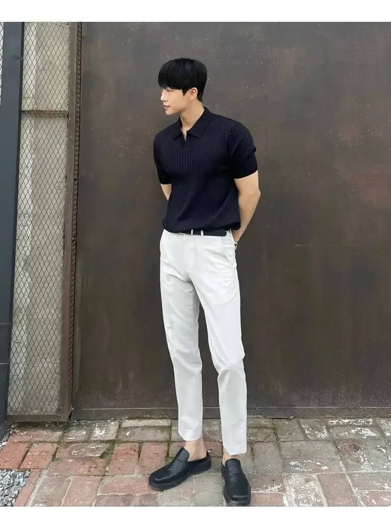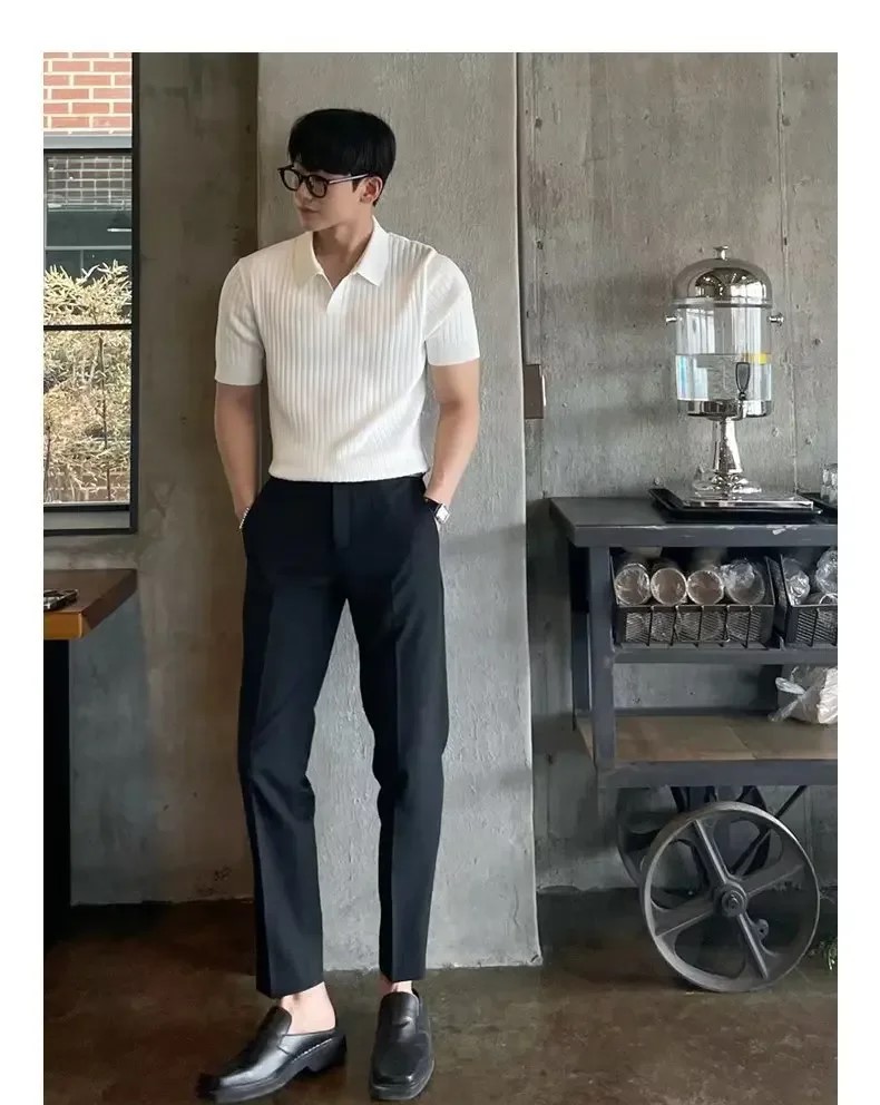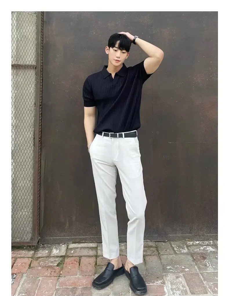 חולצת גברים מסוגננת עם שרוולים קצרים וצווארון V דק (משלוח חינם)