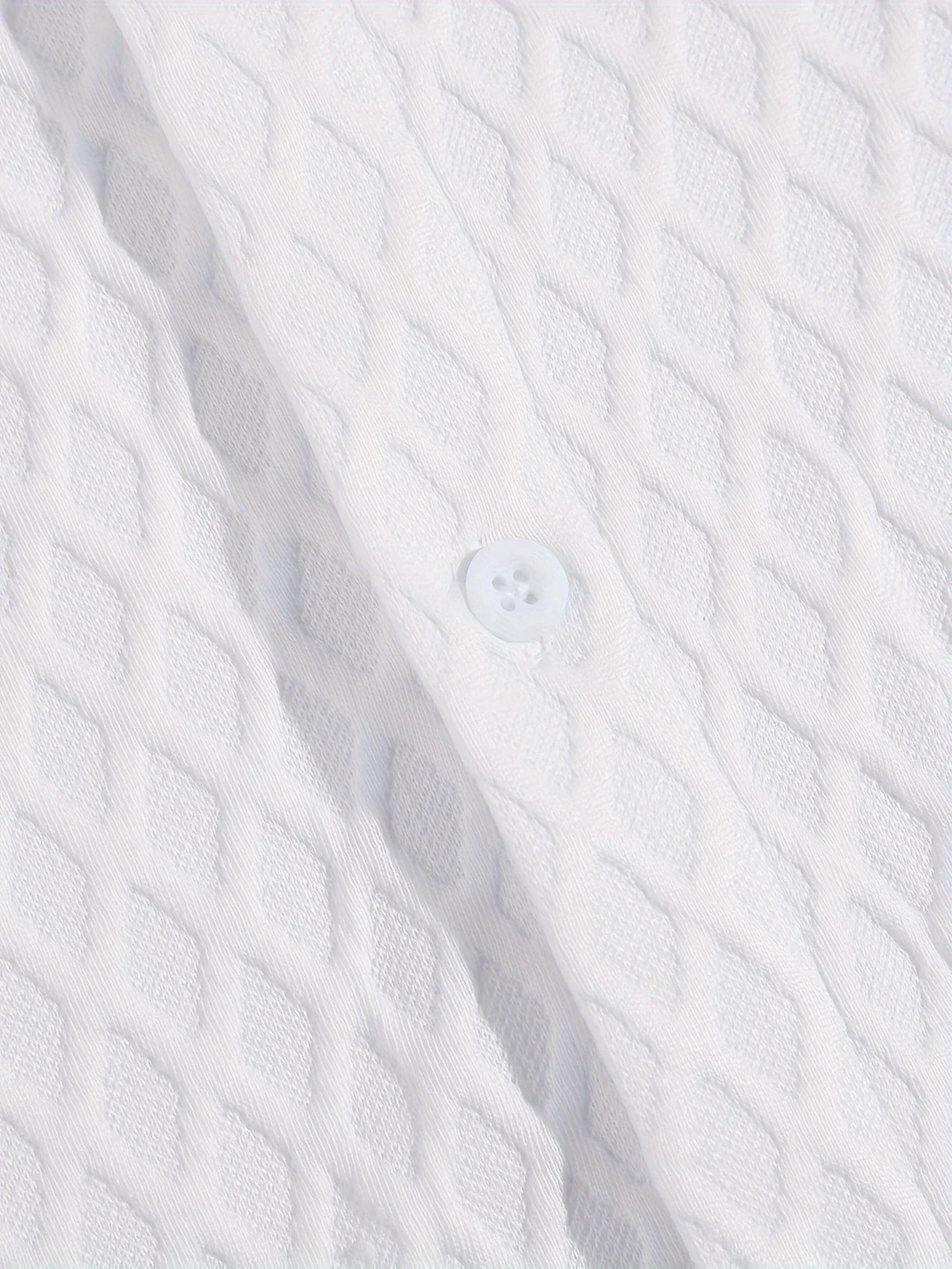חולצת גברים קז’ואל לקיץ עם שרוולים קצרים, בגזרה רחובית, עם צווארון ג’קרד וכפתורים (משלוח חינם)