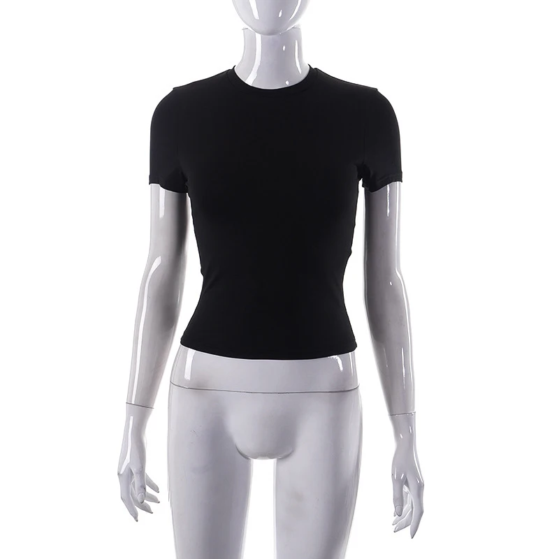 חולצת טי-שירט קצרה לנשים, צבע אחיד (משלוח חינם)