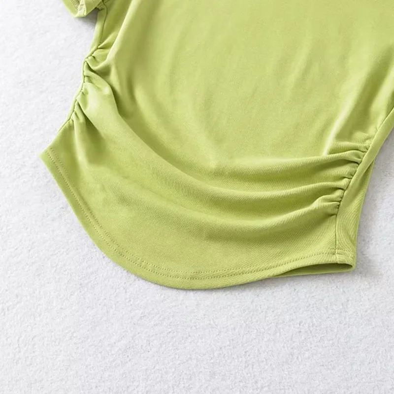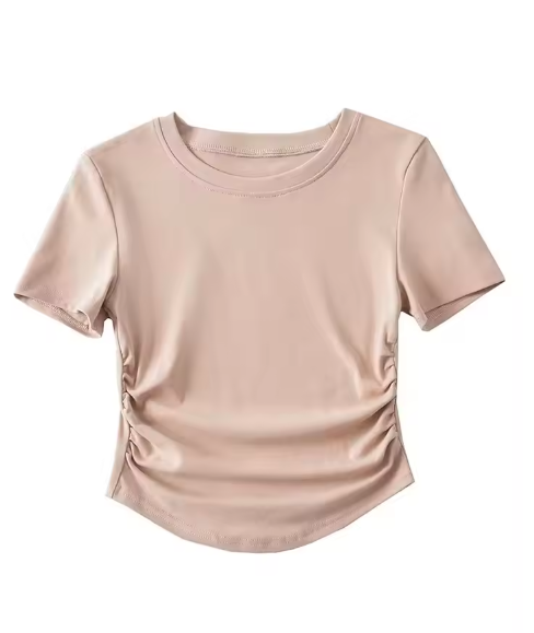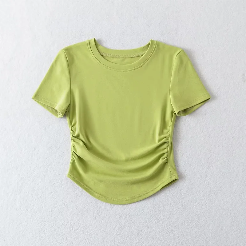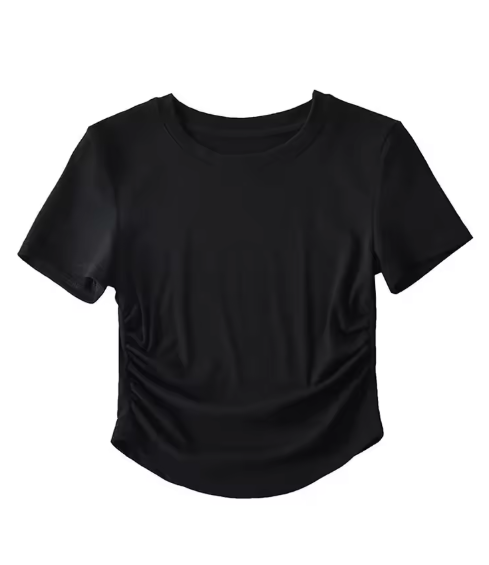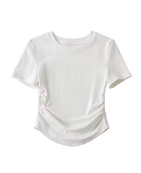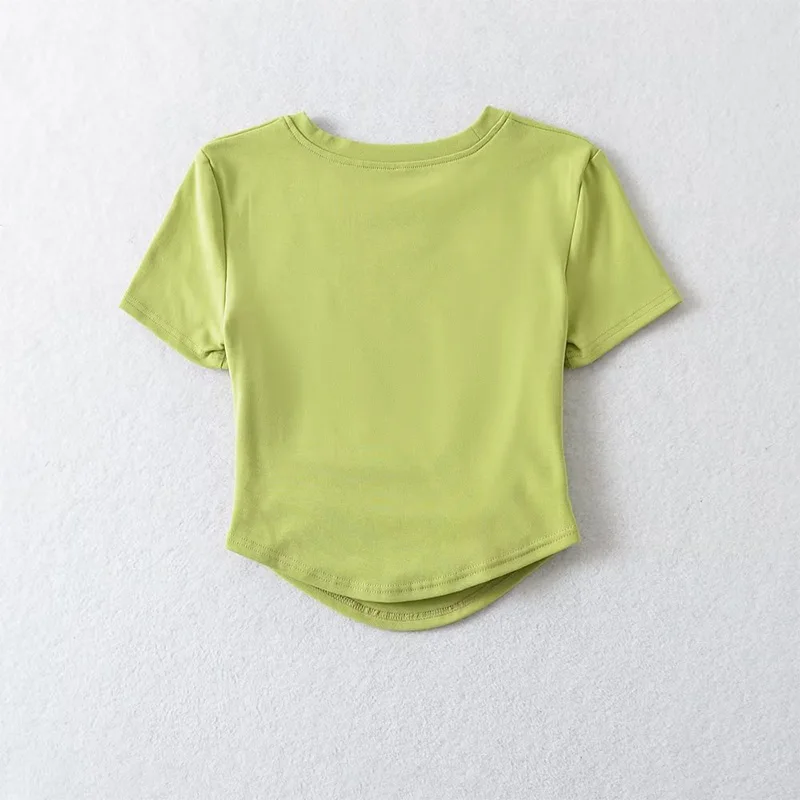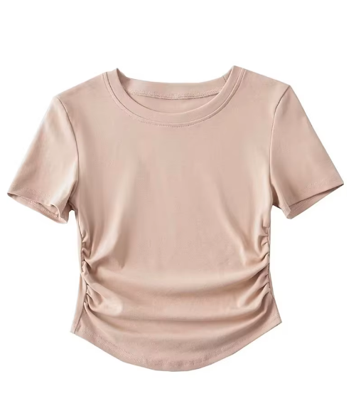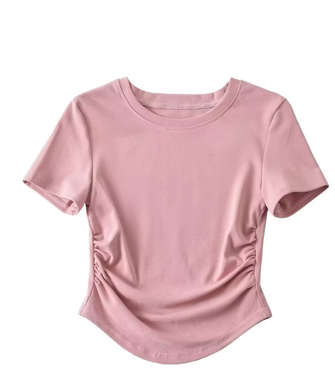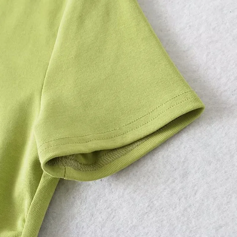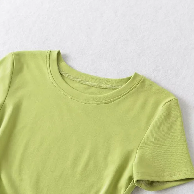 חולצת כותנה קצרה עם שרוולים קצרים וצווארון עגול לנשים (משלוח חינם)