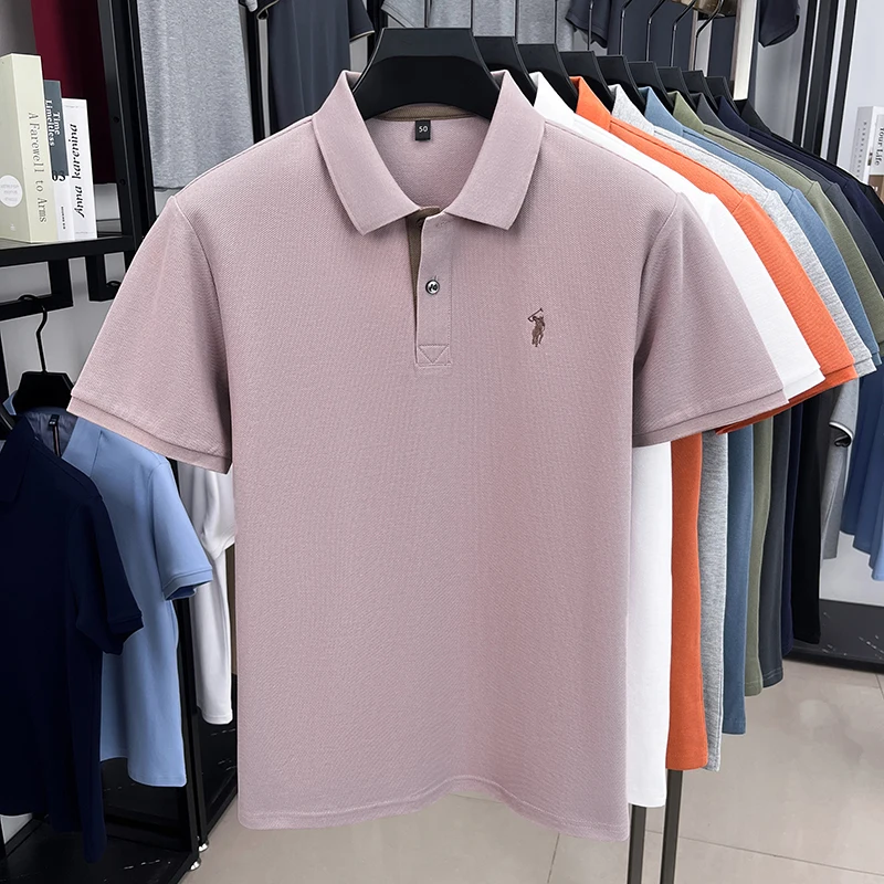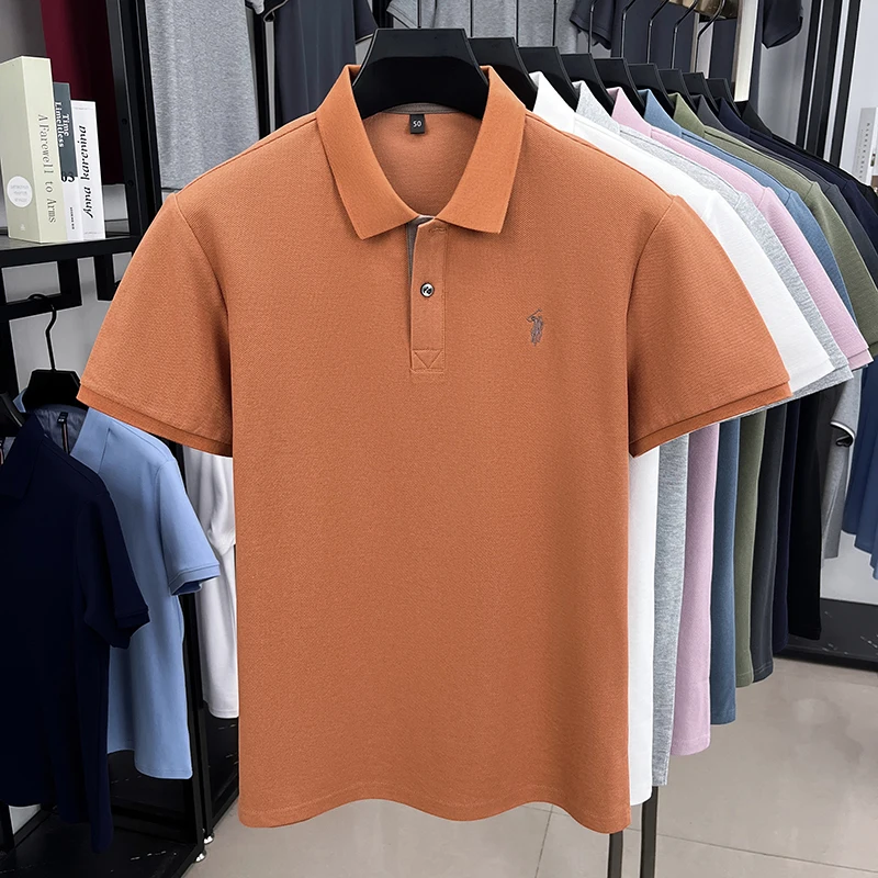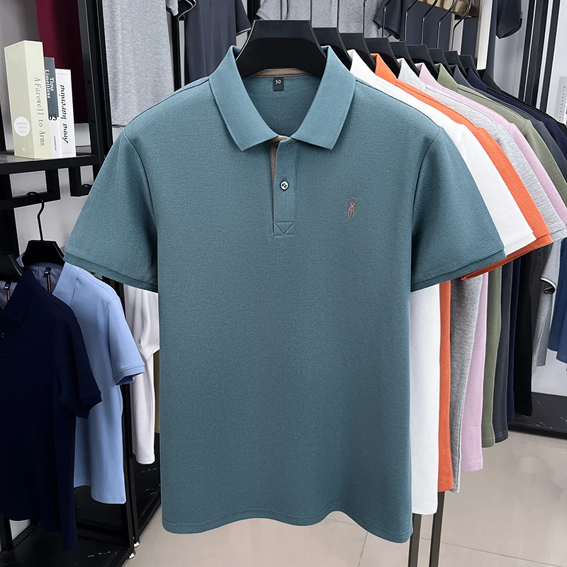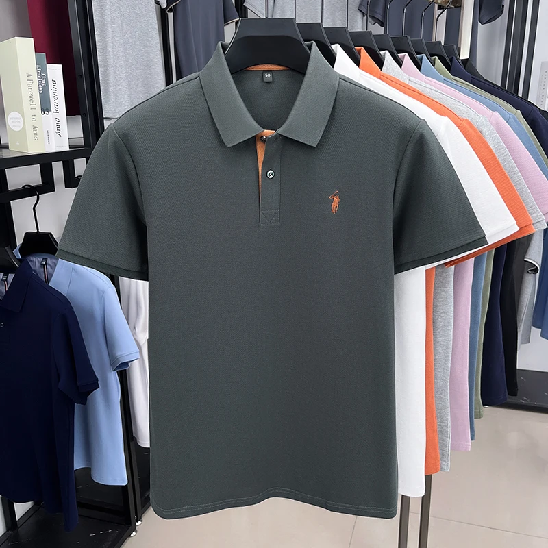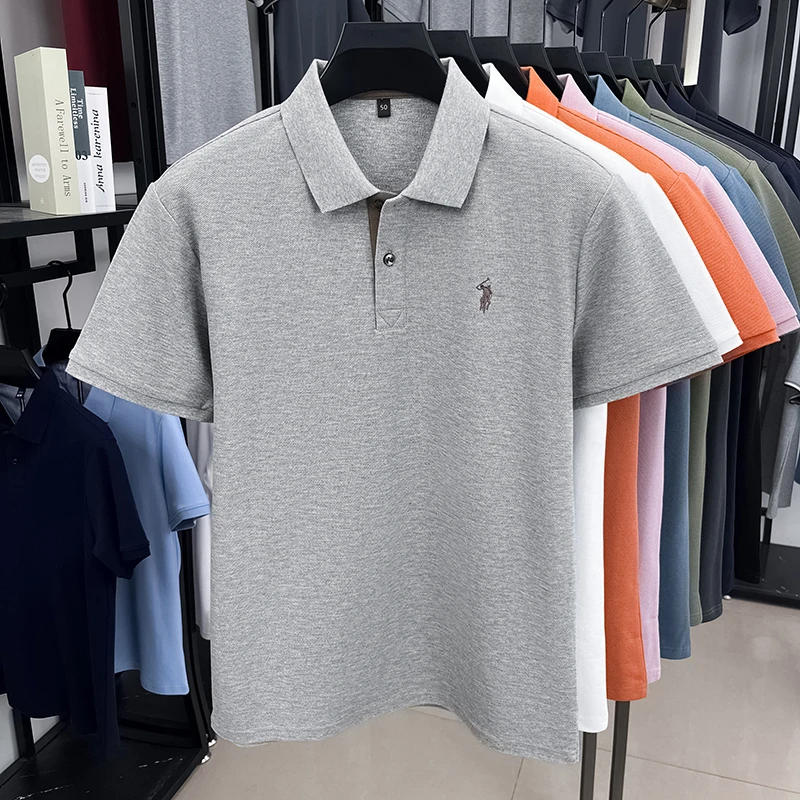 חולצת פולו קצרה מבד 100% כותנה מותג יוקרתי לגברים (משלוח חינם)