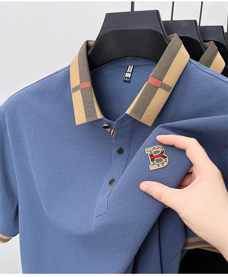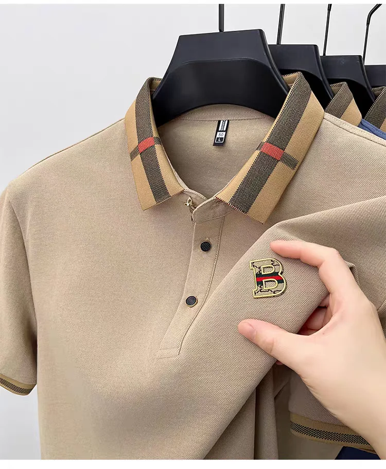 חולצת פולו קצרה עם לוגו מותג יוקרה לגברים (משלוח חינם)