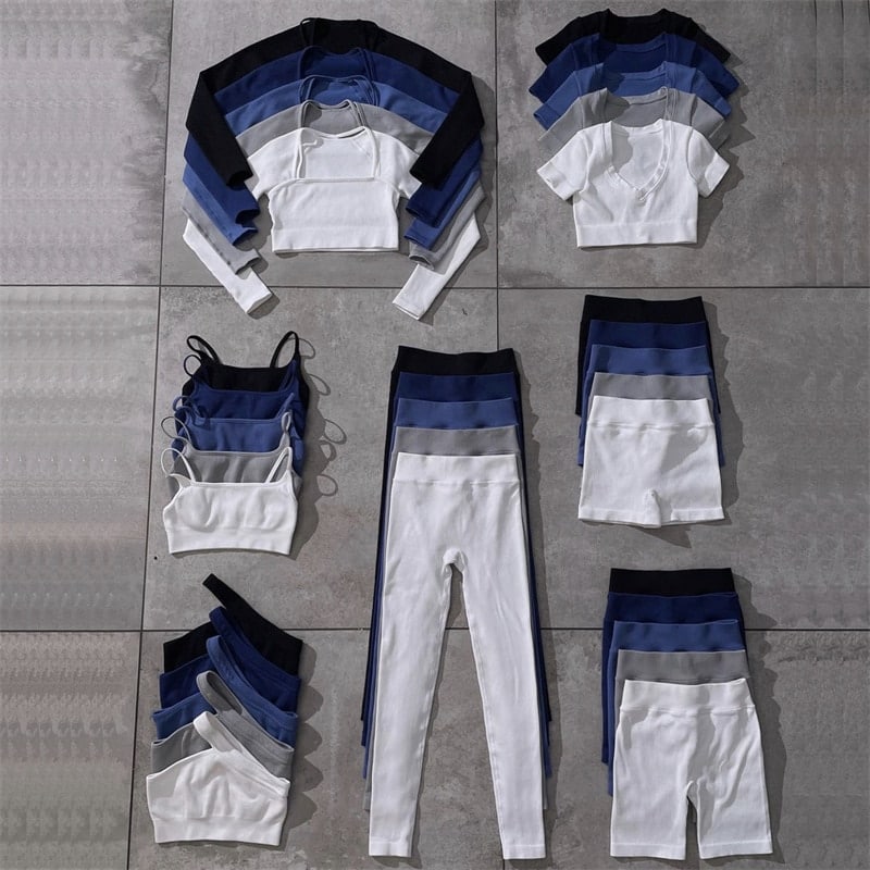 שני חלקים טופ רצועה אלכסונית כתף אחת טייץ ארוך, טופ שרוול ארוך, שני חלקים טופ רצועה אלכסונית כתף אחת טייץ קצר, שני חלקים טופ שרוול ארוך טייץ קצר, טייץ קצר, טופ Tשיירט קצר, טופ רצועה אלכסונית כתף אחת, טייץ ארוך, טופ חזיית ספורט רצועות דקות, שני חלקים טופ חזיית ספורט טייץ ארוך, שני חלקים טופ חזיית ספורט רצועות דקות טייץ ארוך
