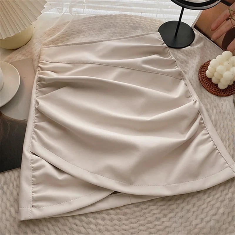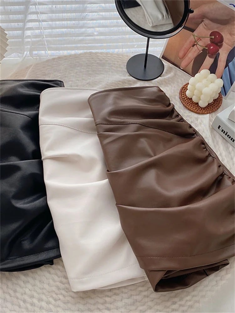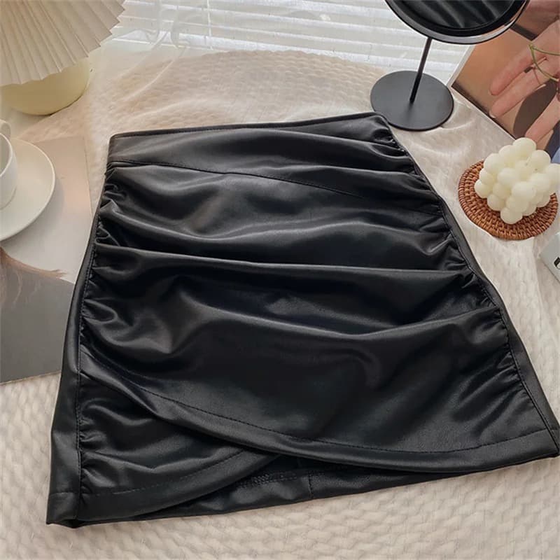 חצאית דמוי עור מיני בעיצוב מחויט, תלך מושלם עם סנדלי עקב וחולצת טי שירט בייסיק לבנה ✨