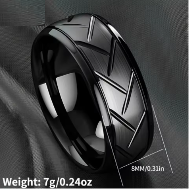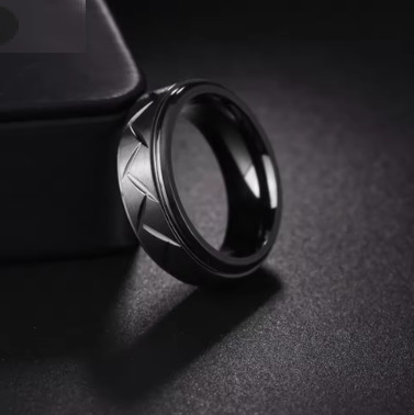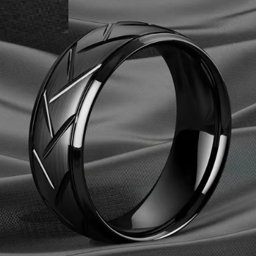 טבעת פלדת אל-חלד שחורה לגברים ונשים בסגנון אופנתי עם חריטה מרובה (משלוח חינם)