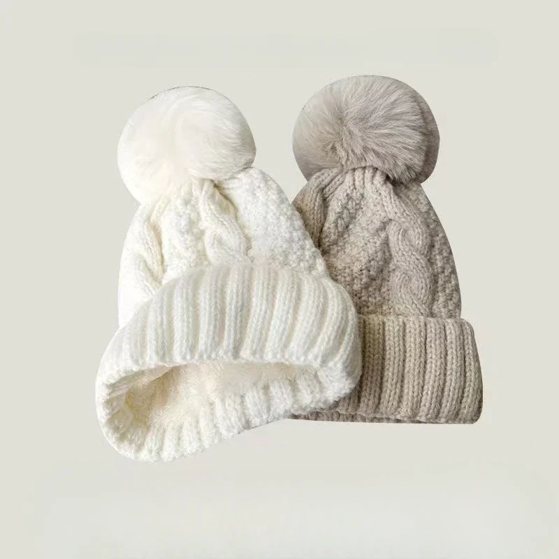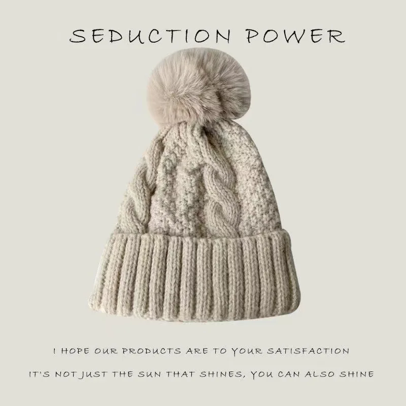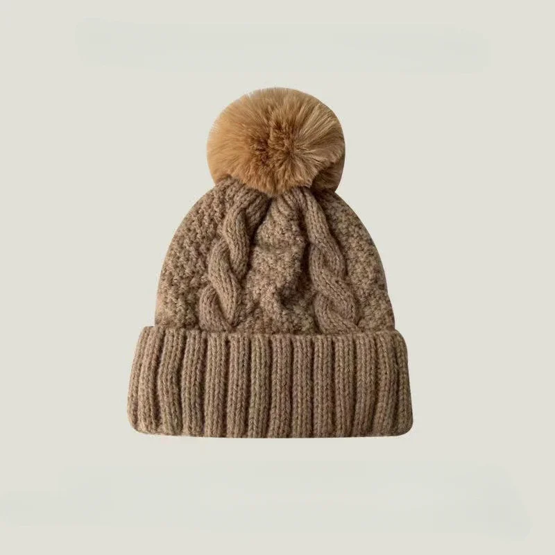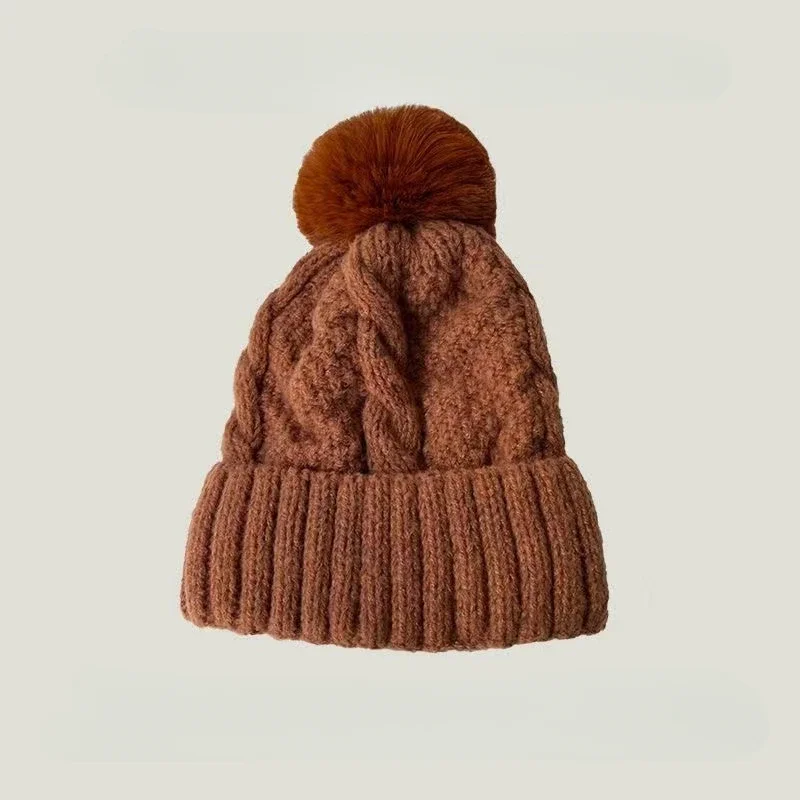 כובע סריגה מסוגנן לחורף עם פומפון מפואר ועבה (משלוח חינם)