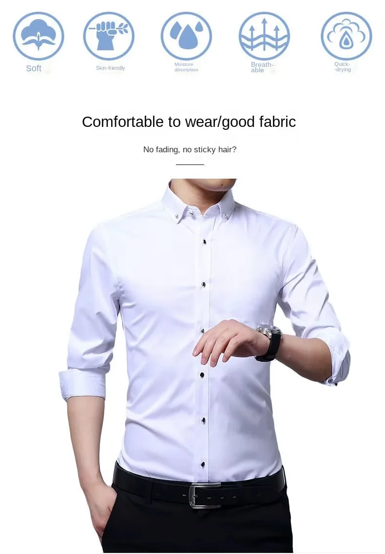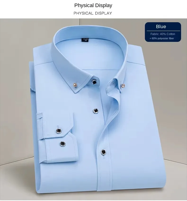 חולצת עסקים לגברים בסגנון פורמלי דקה קלאסית עם כפתורי יהלומים (משלוח חינם)
