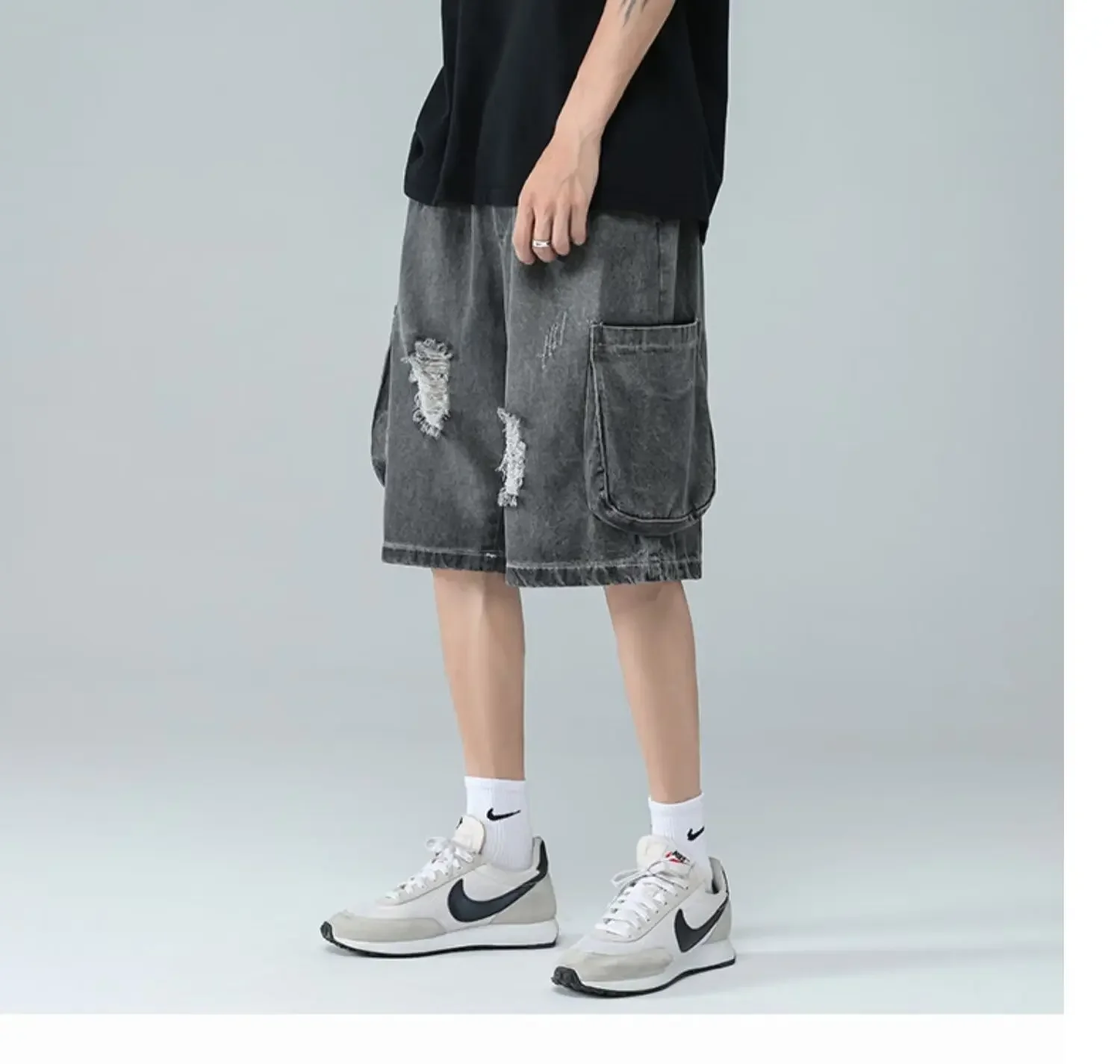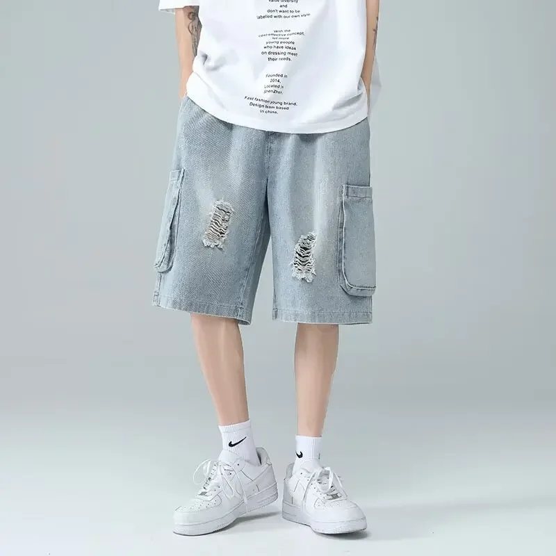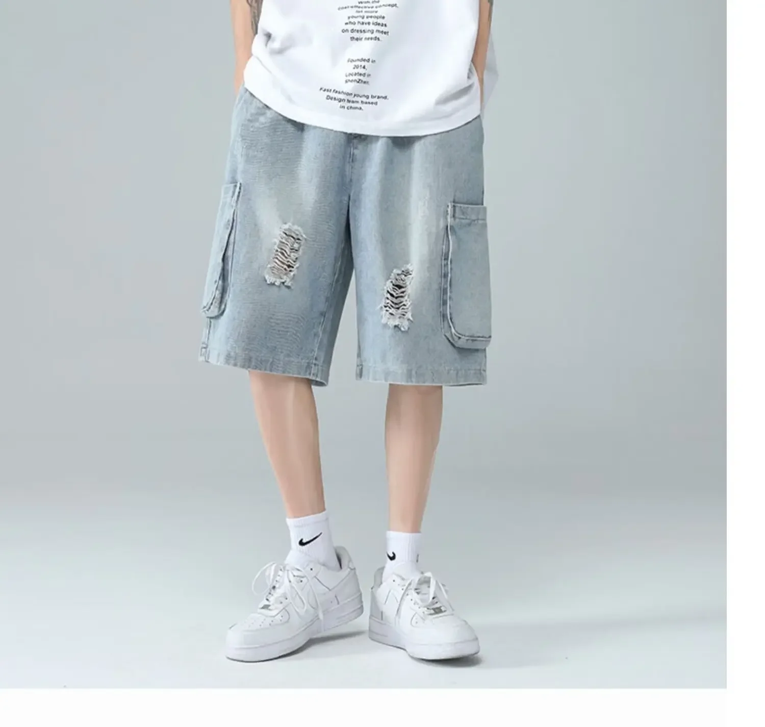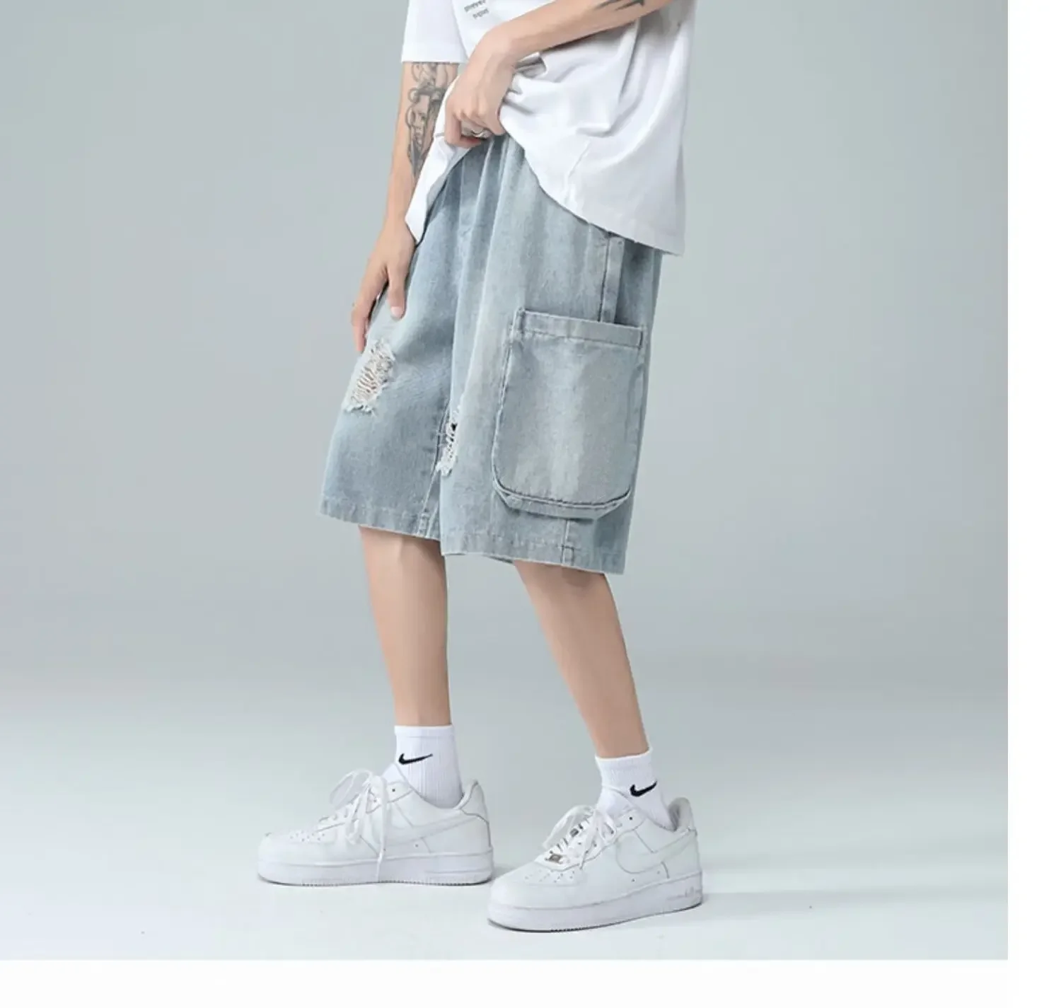 מכנסי ג’ינס קצרים לגברים בגזרה רחבה לקיץ (משלוח חינם)