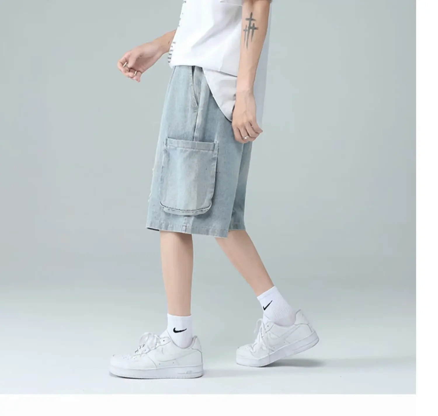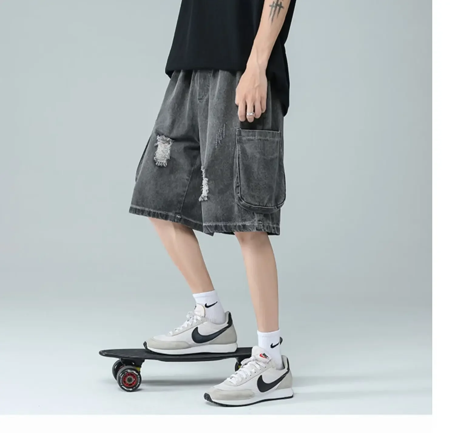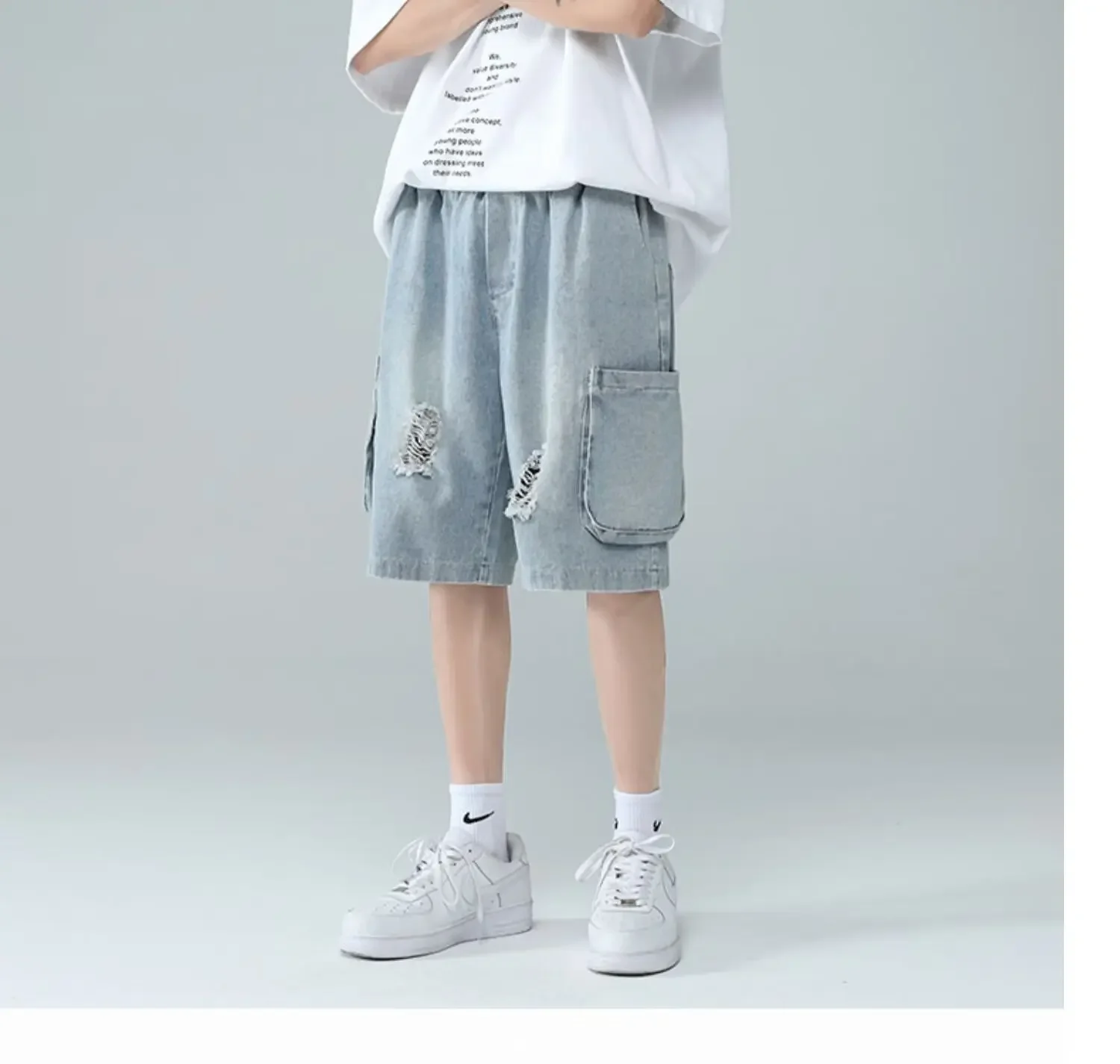 מכנסי ג’ינס קצרים לגברים בגזרה רחבה לקיץ (משלוח חינם)