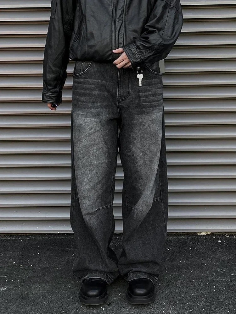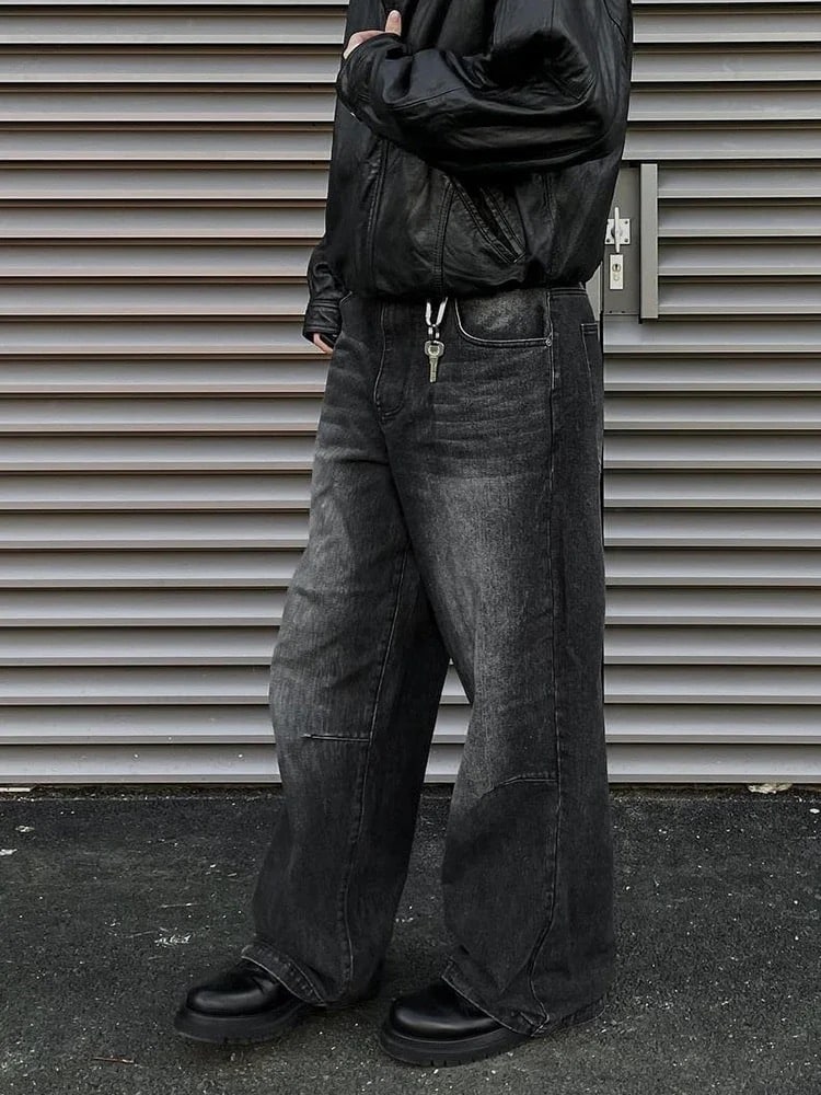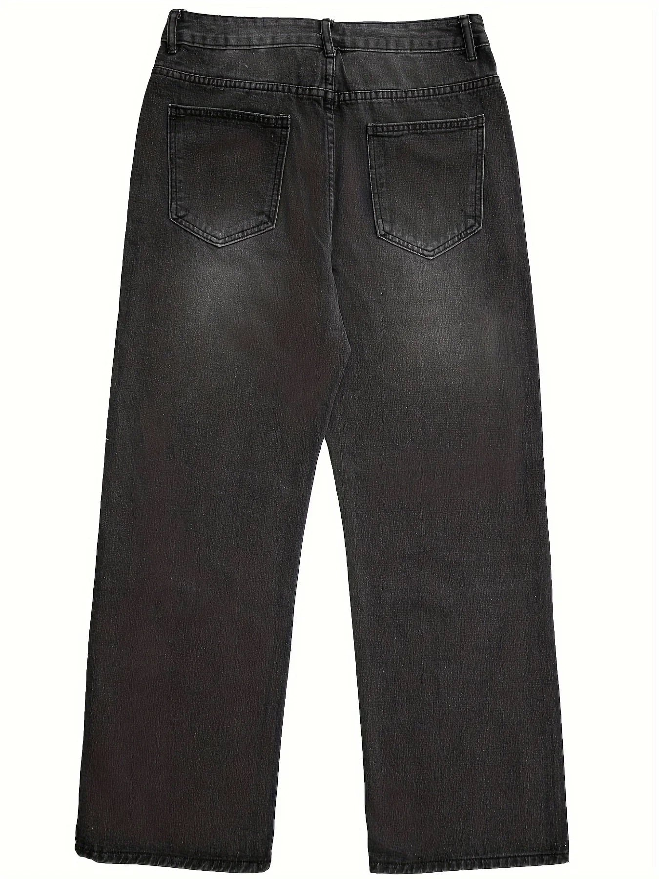 מכנסי ג׳ינס כהה גזרה נמוכה בסגנון ישר loose .