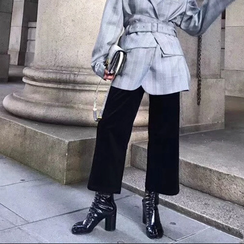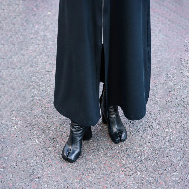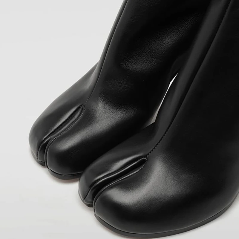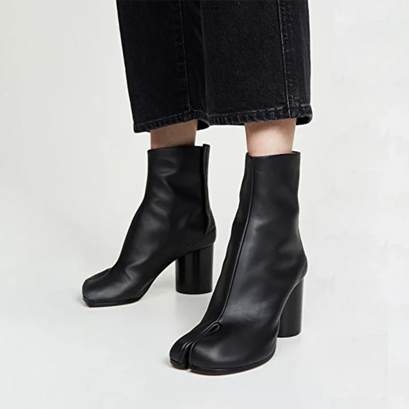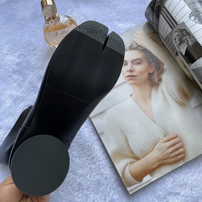 נעלי טאבי מעוצבות מעור עם עקב גבוה ועבה לנשים (משלוח חינם)