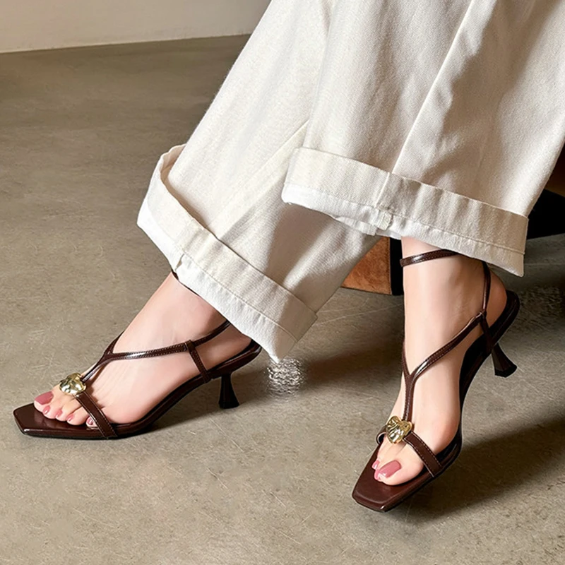 נעלי סנדלי עקב גבוהות לנשים, עשויות מעור אמיתי (משלוח חינם)