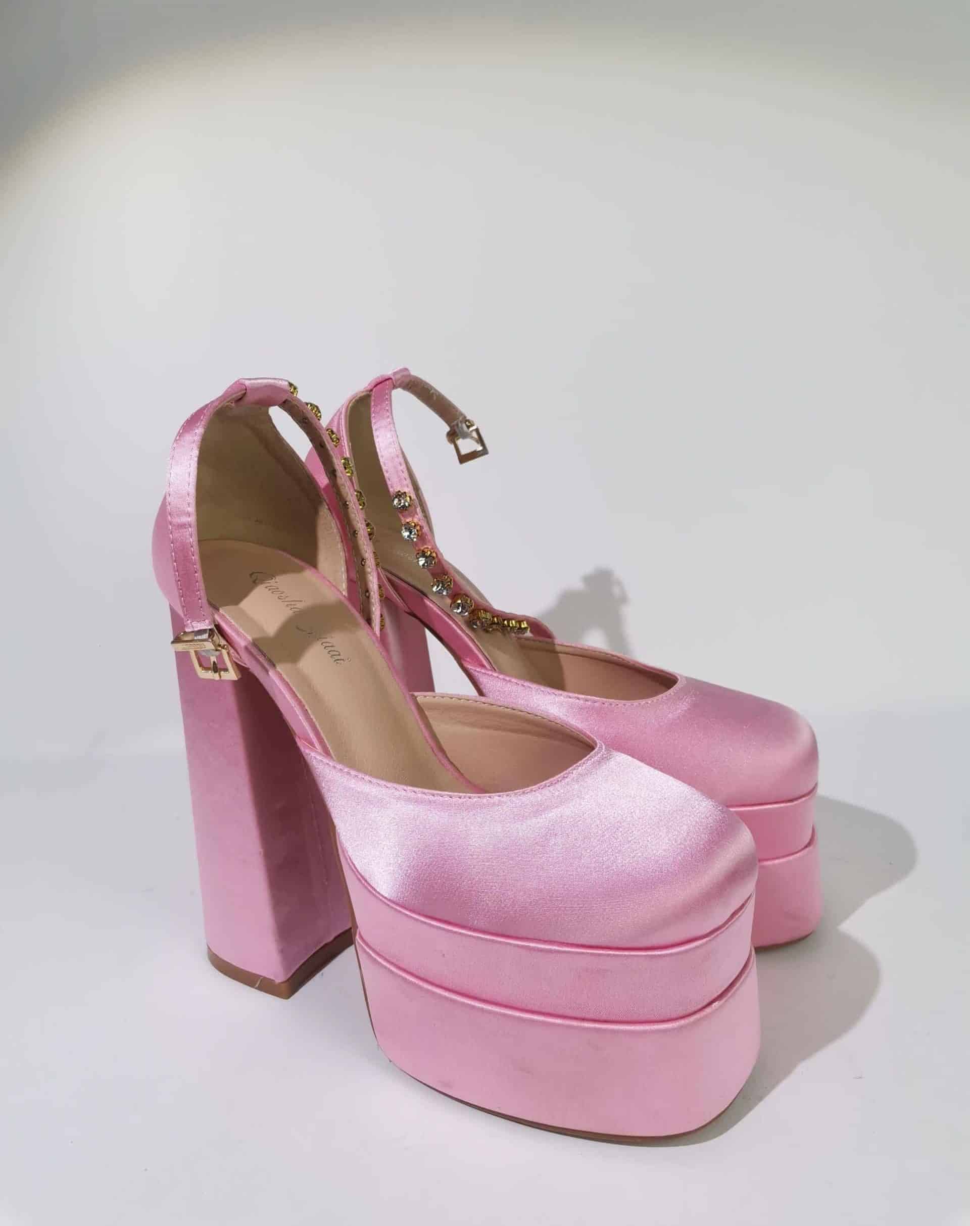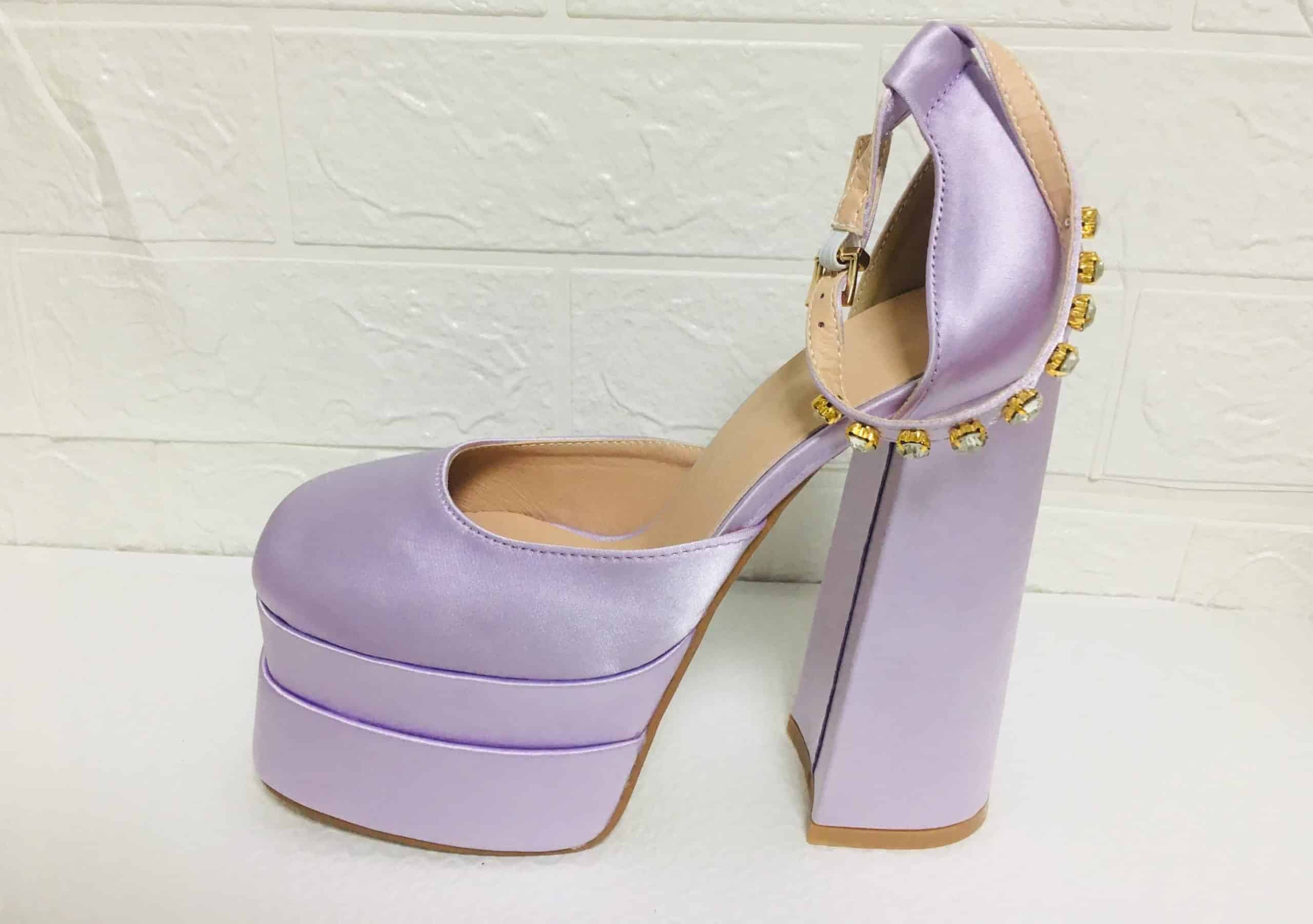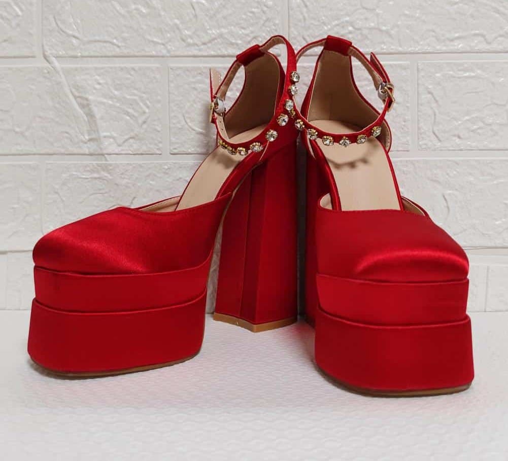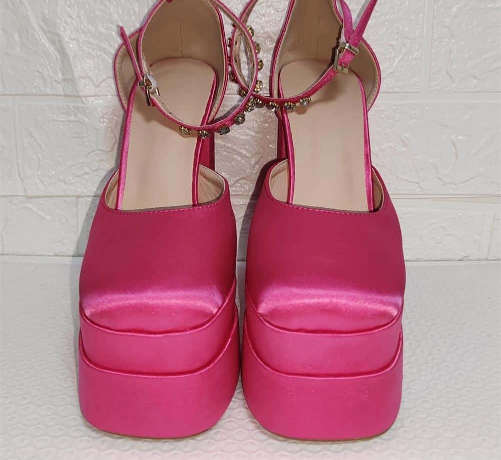 סנדלי נשים לקיץ. עם פלטפורמה עבה ועקב גבוהה בצבעים ססגוניים במראה יוקרתי בסגנון בובה