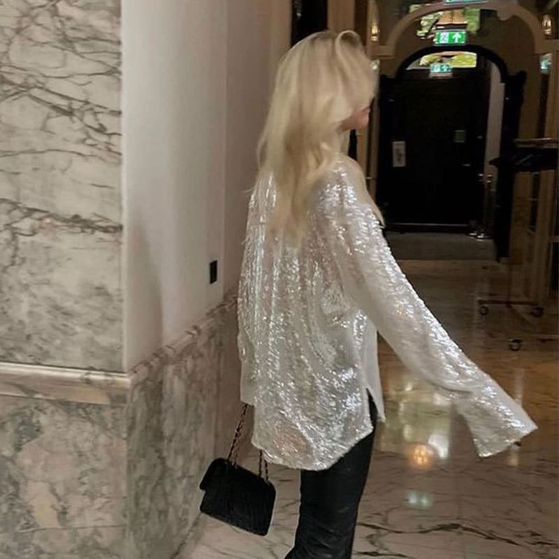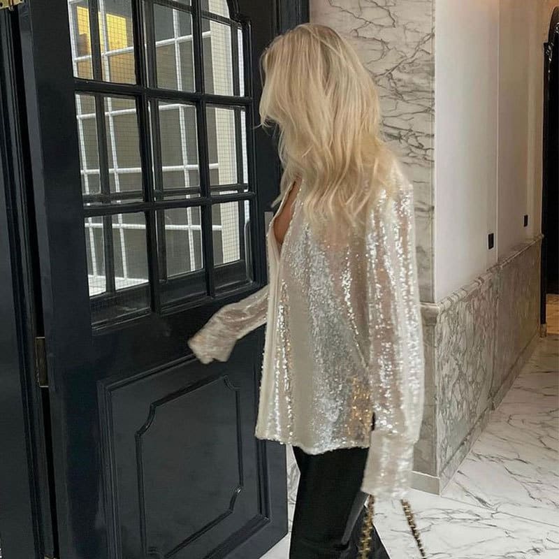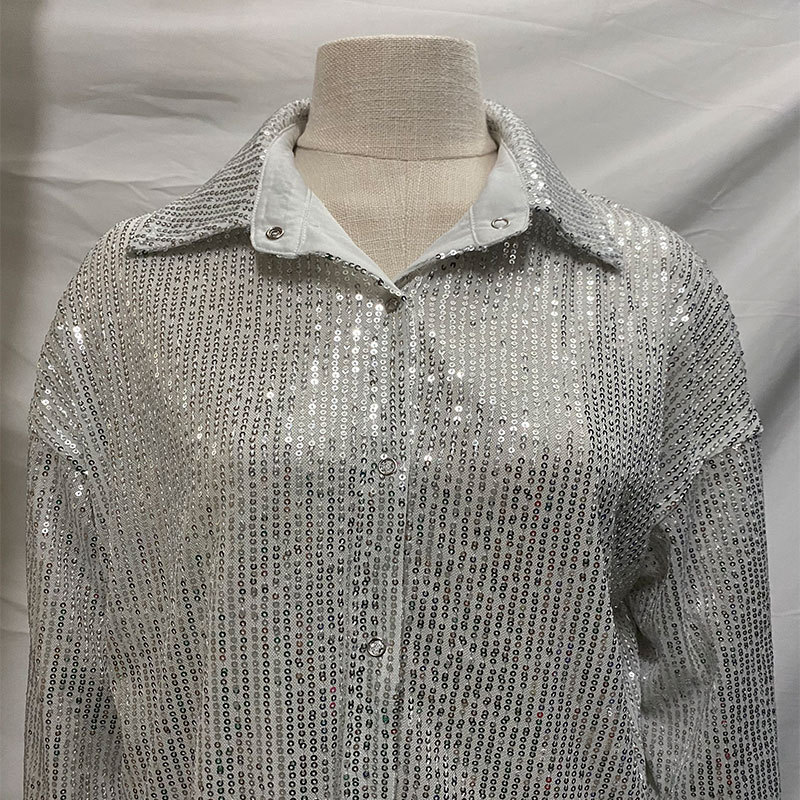חולצת שמלה מכופתרת פאייטים שרוול ארוך- רייבן