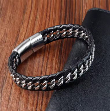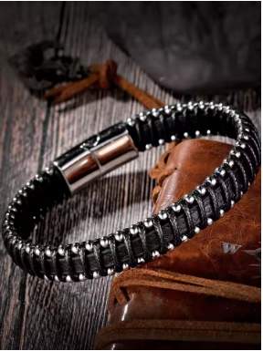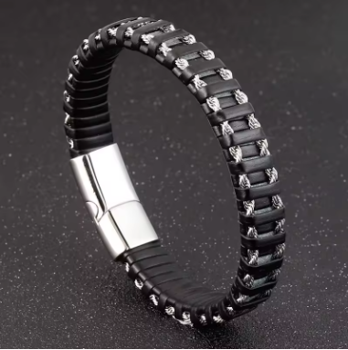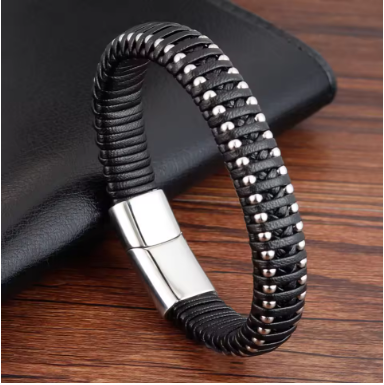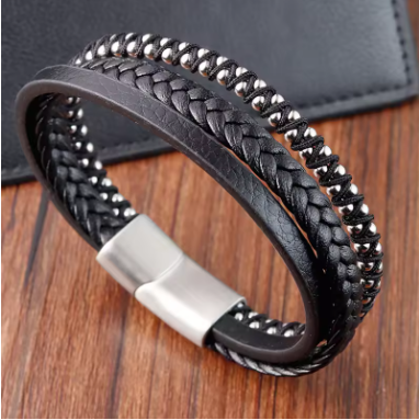 צמיד גברים מעור שחור (משלוח חינם)
