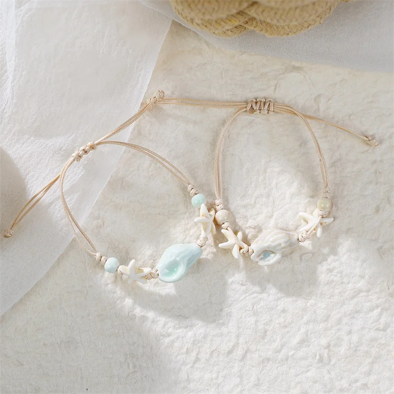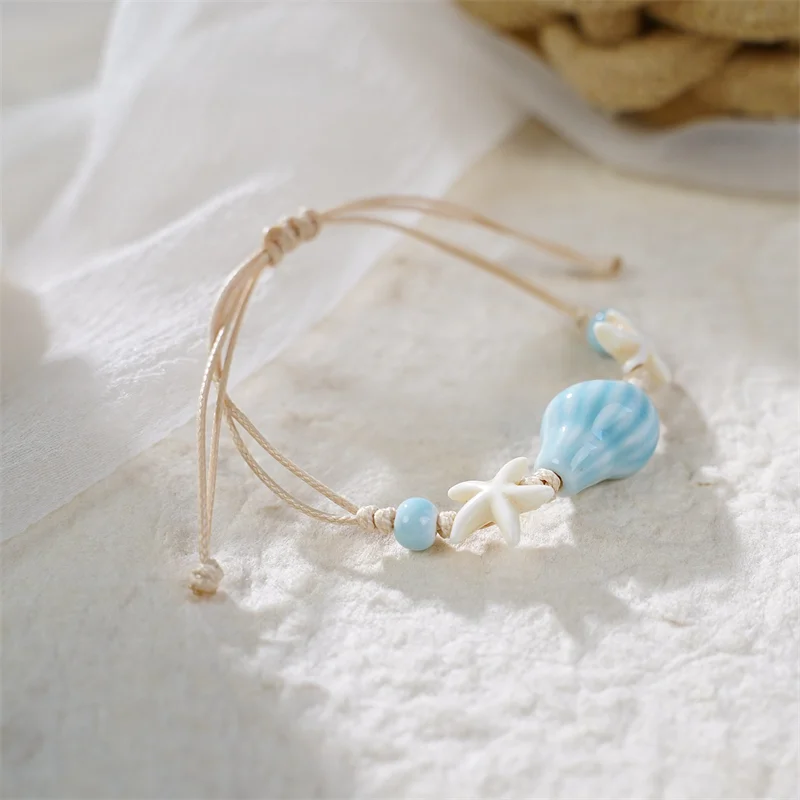 צמיד קרמיקה משובץ בחרוזי קונכיה (משלוח חינם)