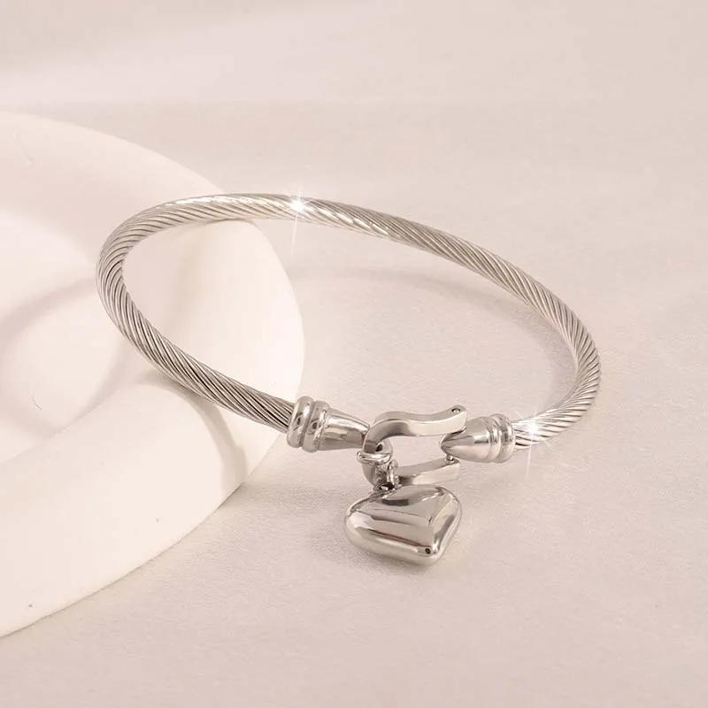 צמידי תליון לב בצבע זהב מפלדת אל-חלד לנשים (משלוח חינם)