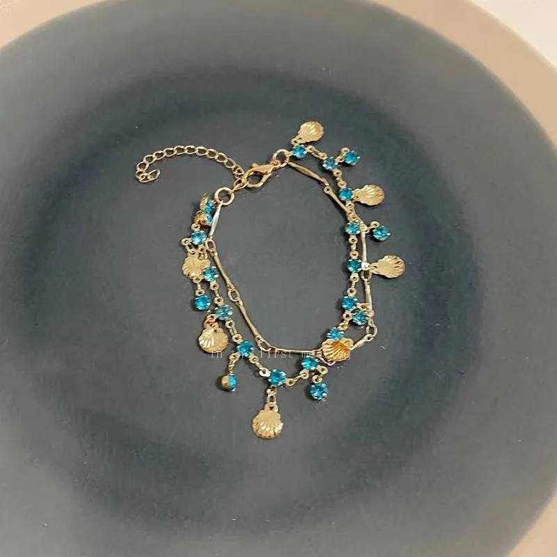 צמיד קריסטל כחול רומנטי צרפתי עם תליוני צדפה לנשים (משלוח חינם)