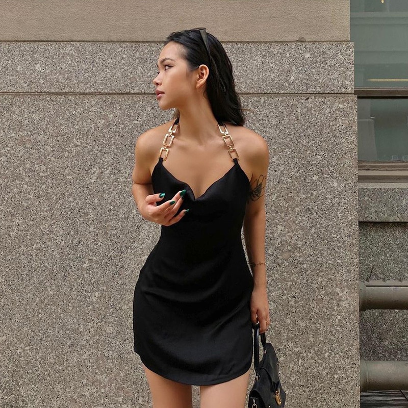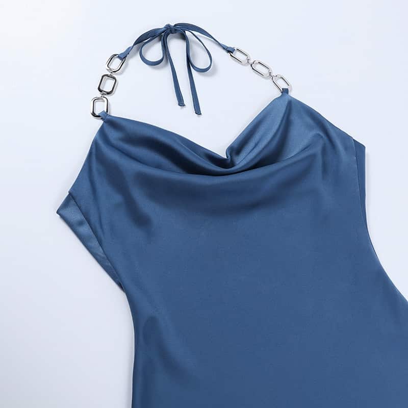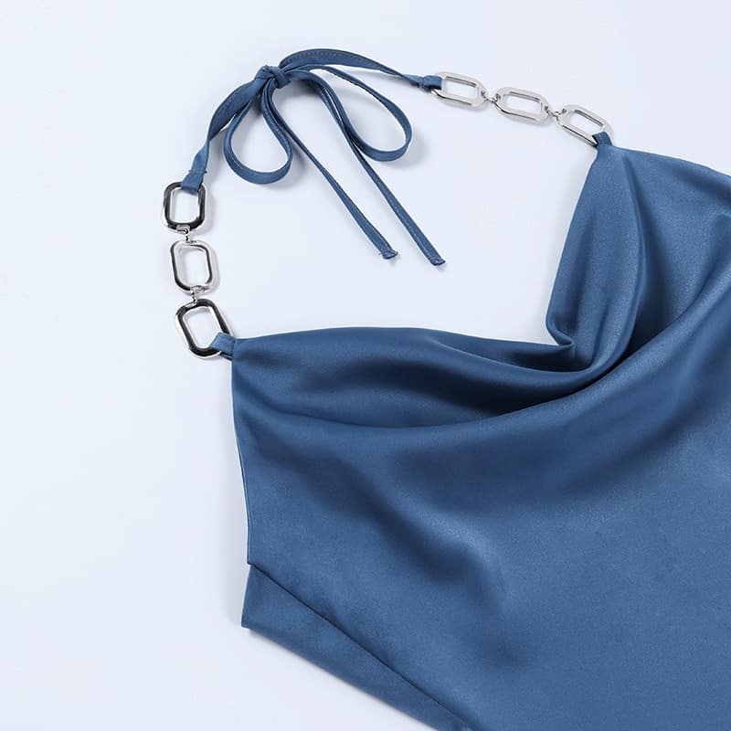 שמלה אופנתית סאטן כתפיות שרשרת זהב- אייבי