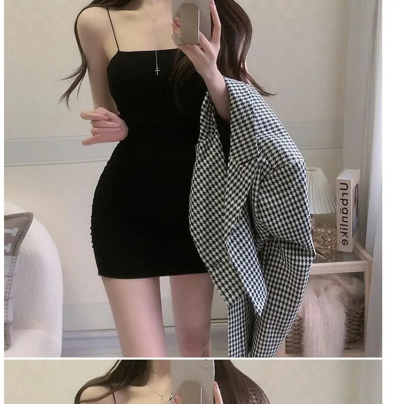 שמלה קצרה ללא שרוולים עם רצועה מותאמת לגוף (משלוח חינם)
