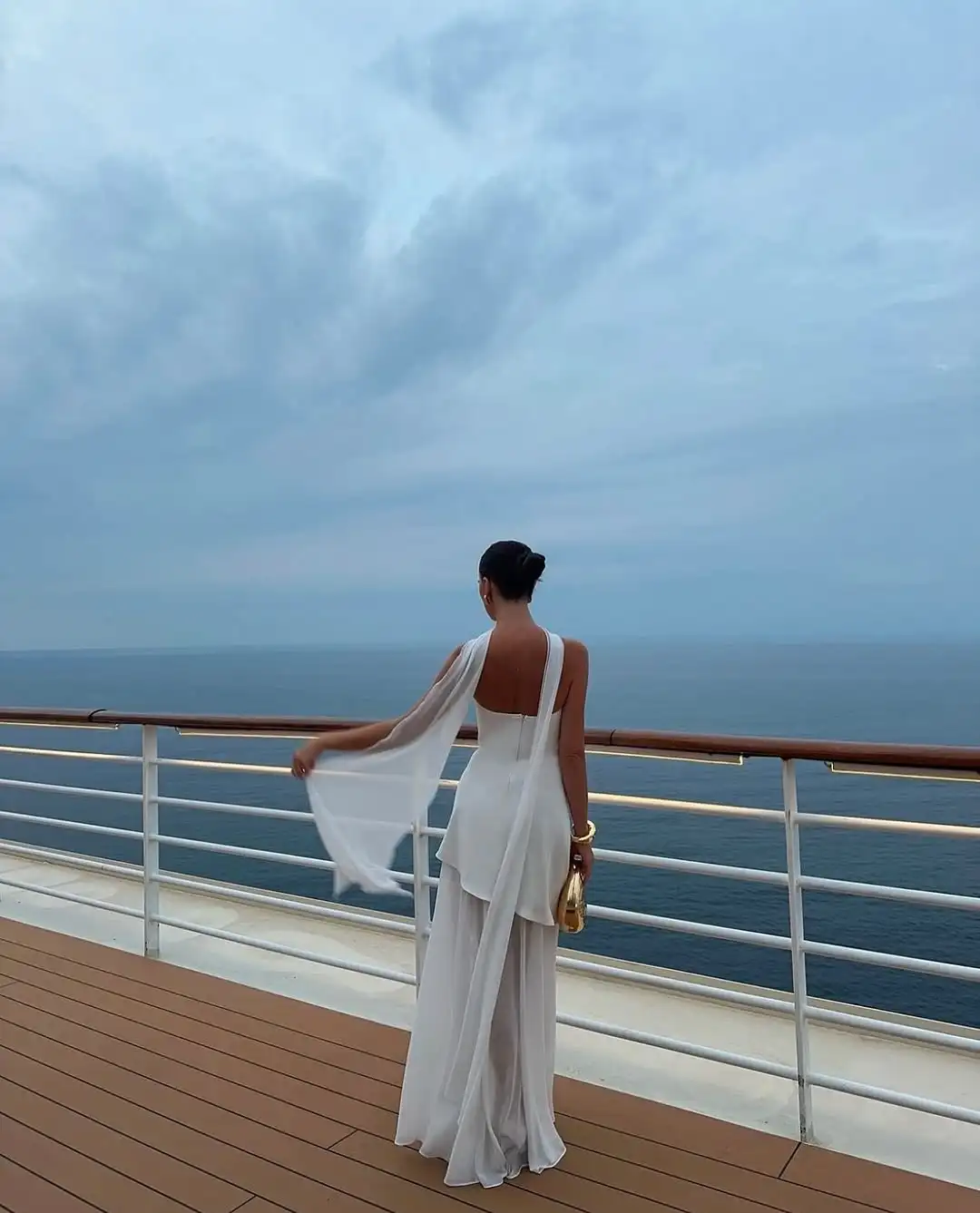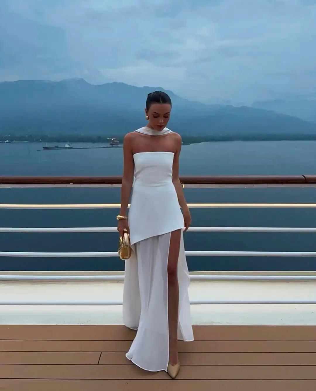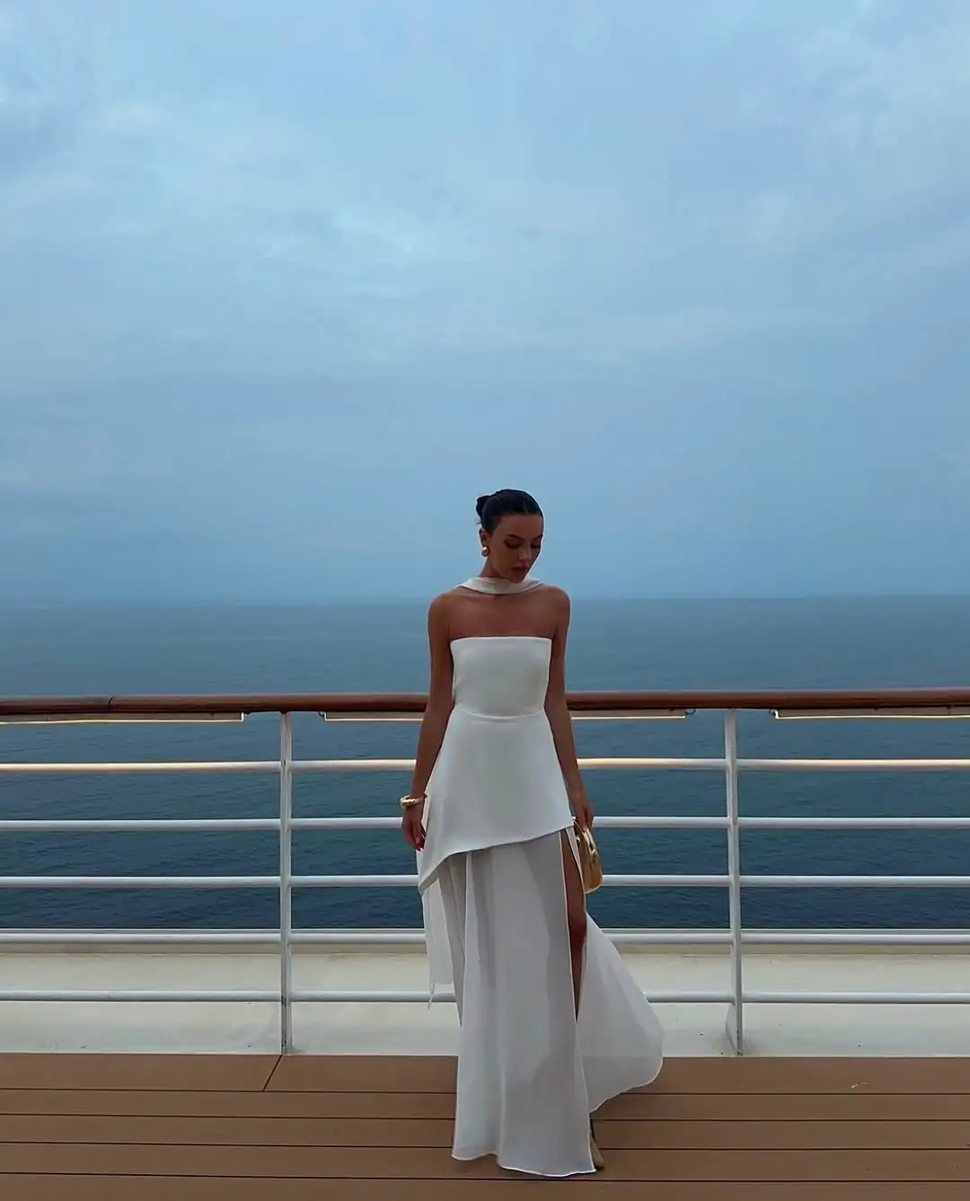 שמלה מעוטרת ברצועות עם צעיף (משלוח חינם)