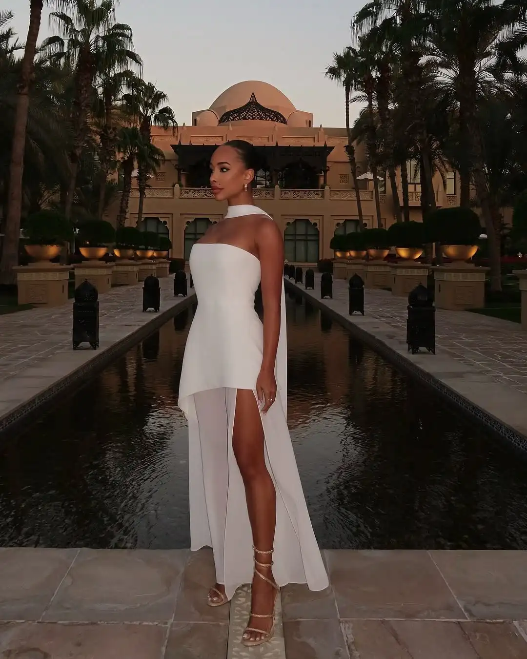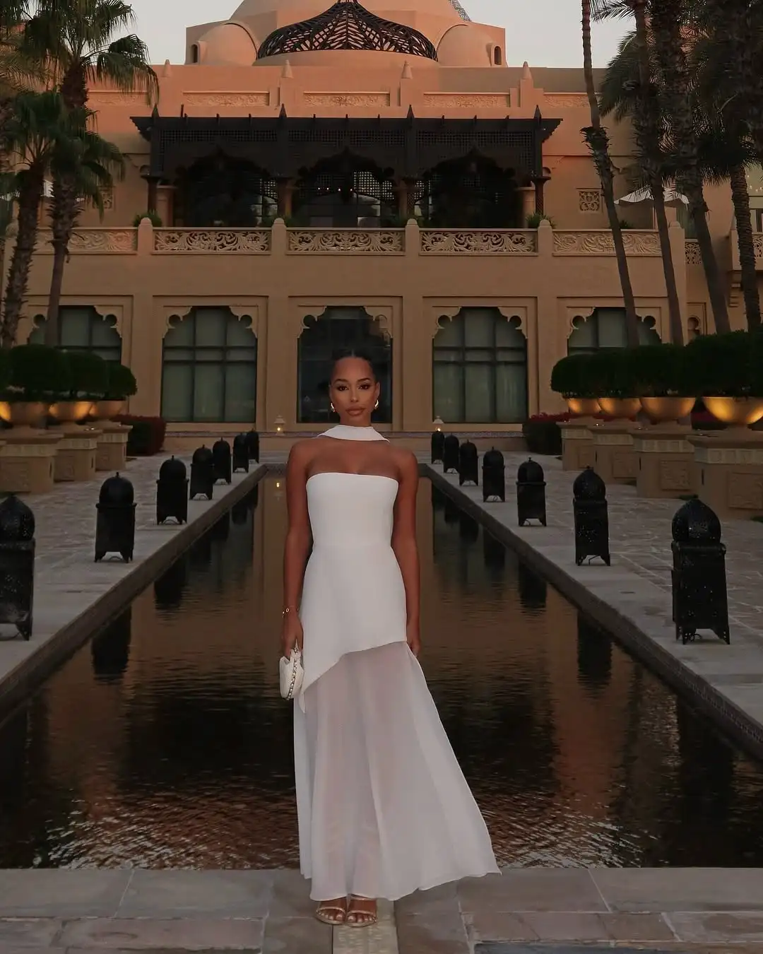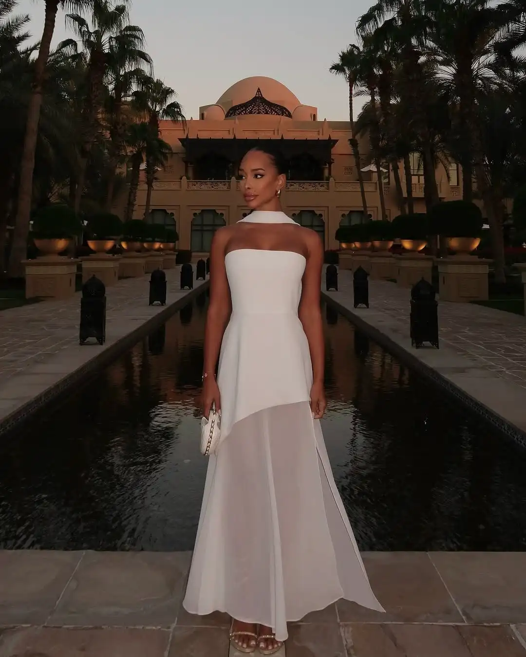 שמלה מעוטרת ברצועות עם צעיף (משלוח חינם)