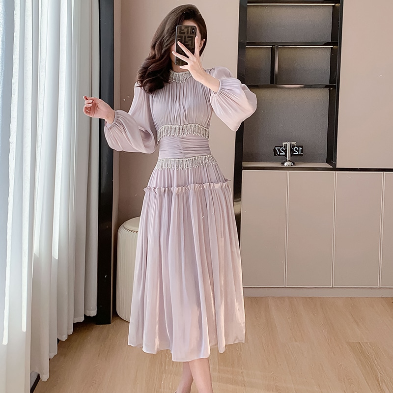 שמלת מידי מלמלה שיפון בעיטור יהלומים.