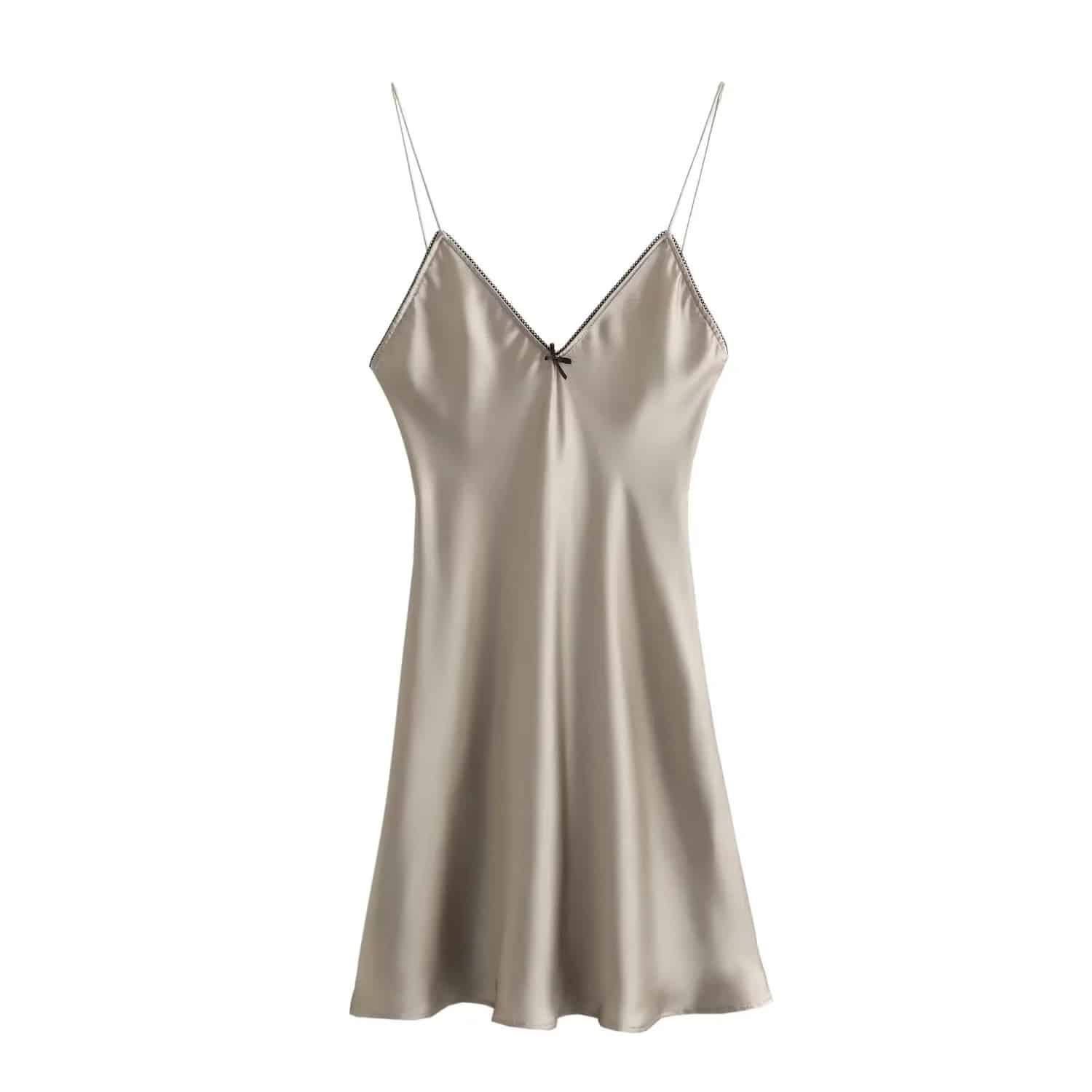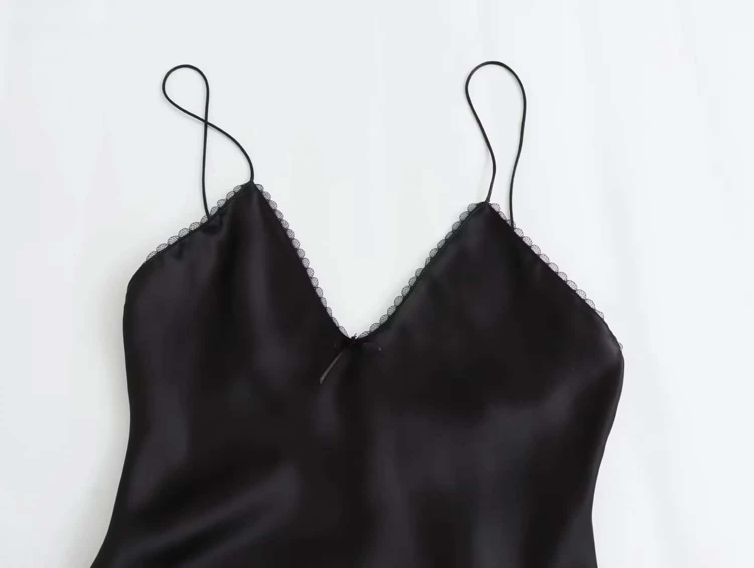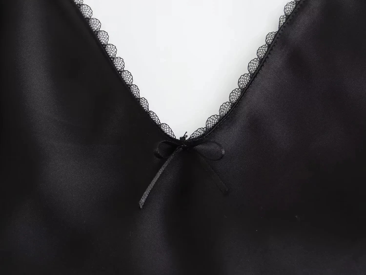 שמלת מיני סאטן קלילה בעיטור תחרה ופפיון, למראה אלגנטי ויוקרתי ✨