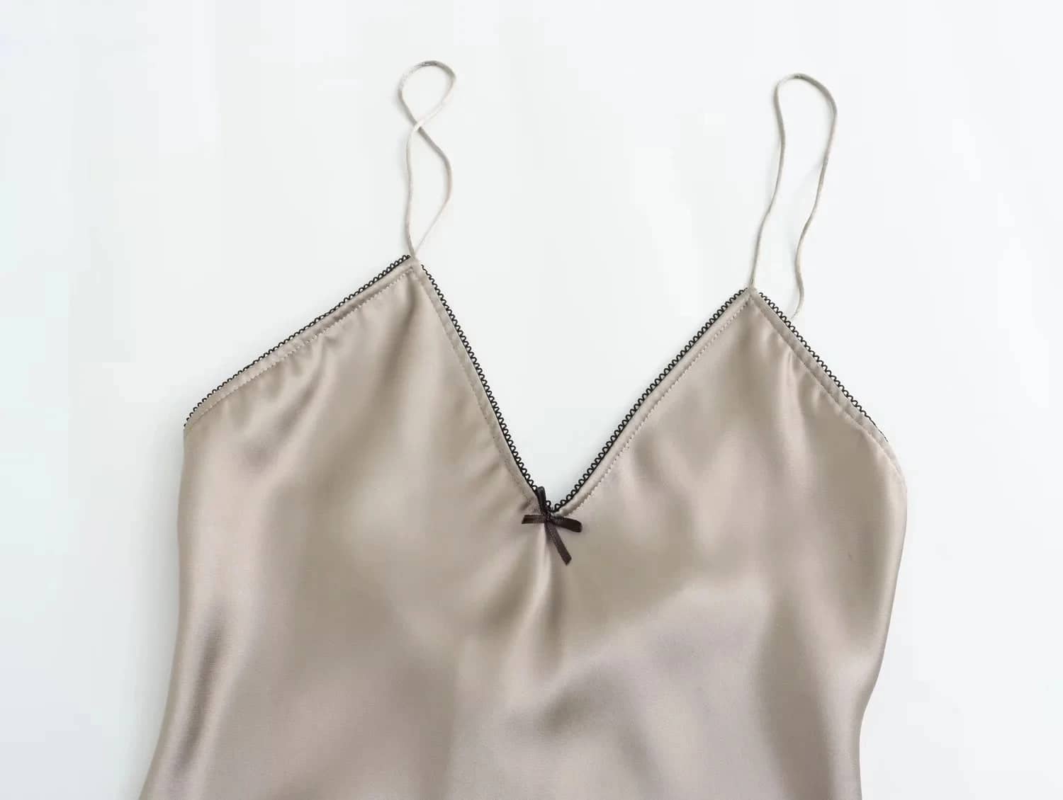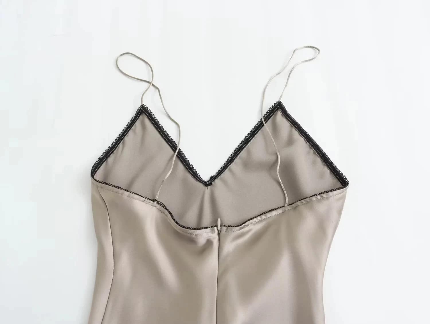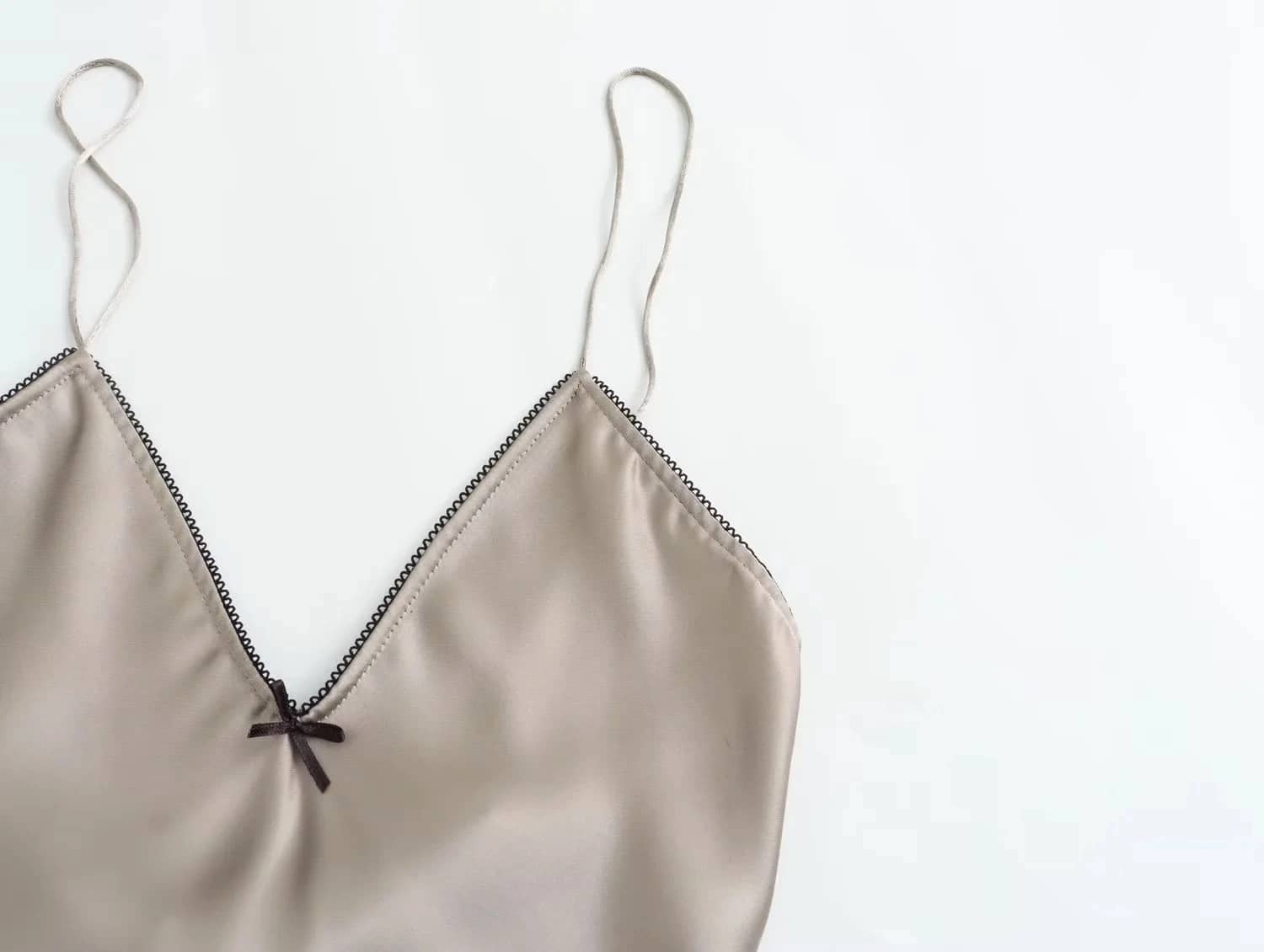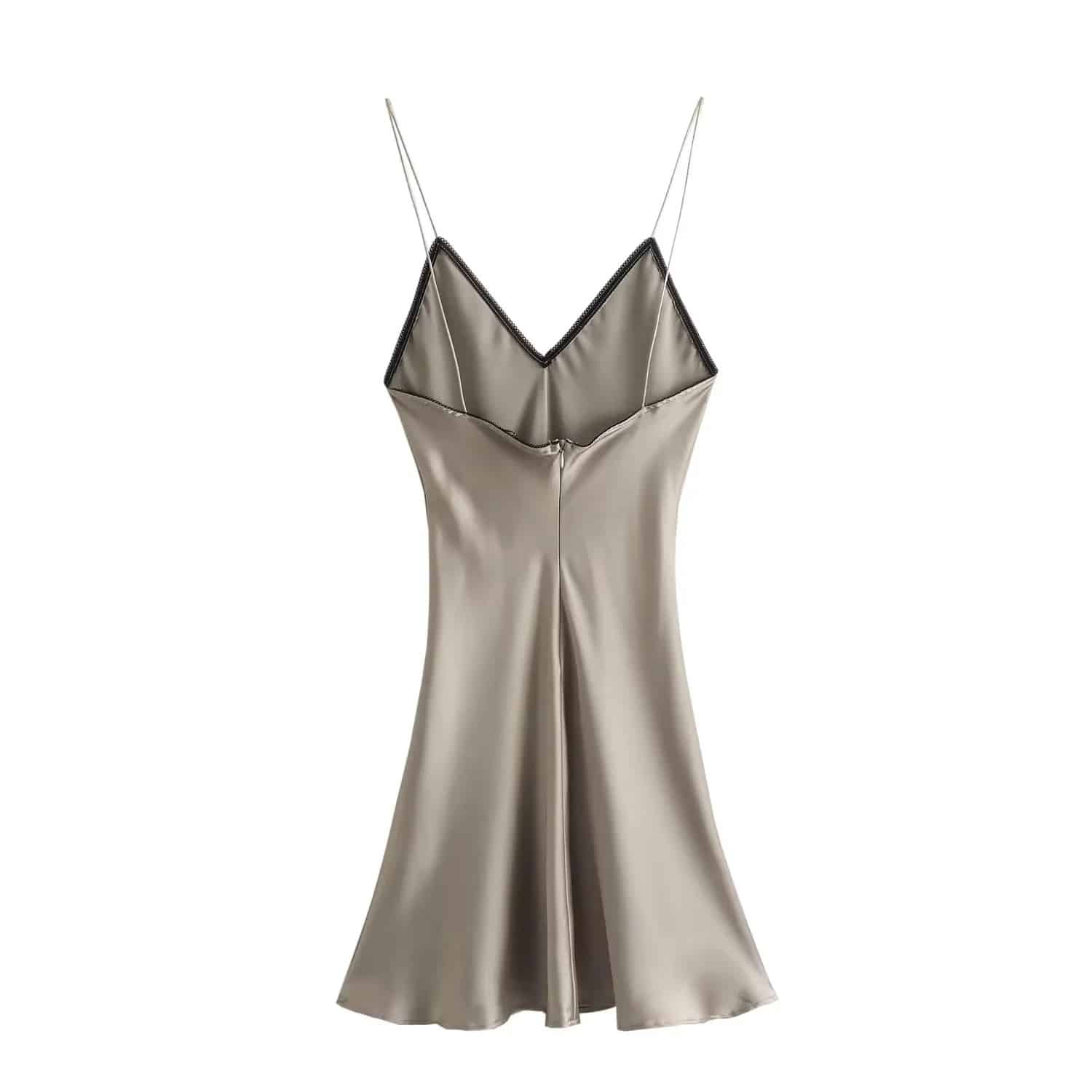 שמלת מיני סאטן קלילה בעיטור תחרה ופפיון, למראה אלגנטי ויוקרתי ✨