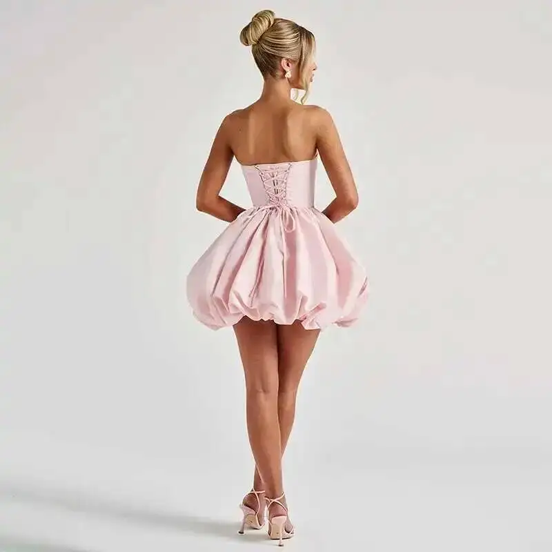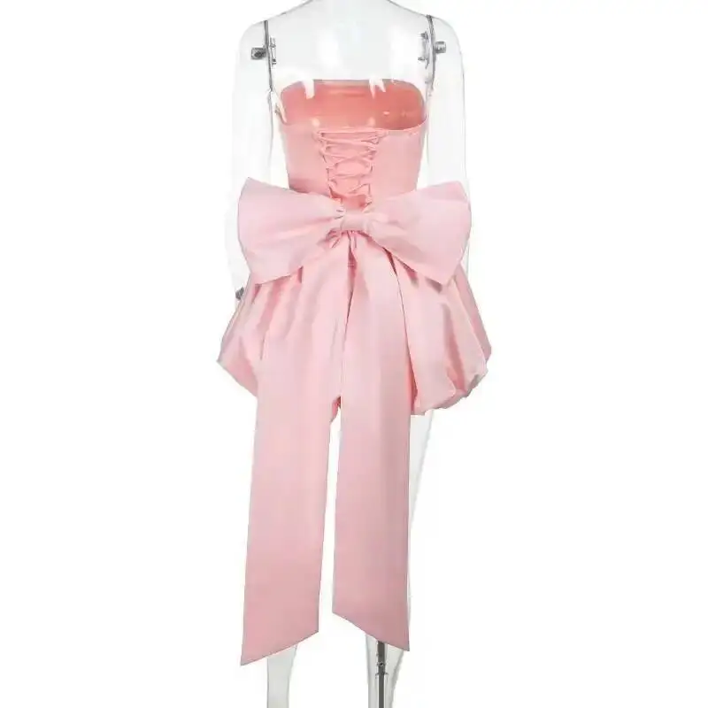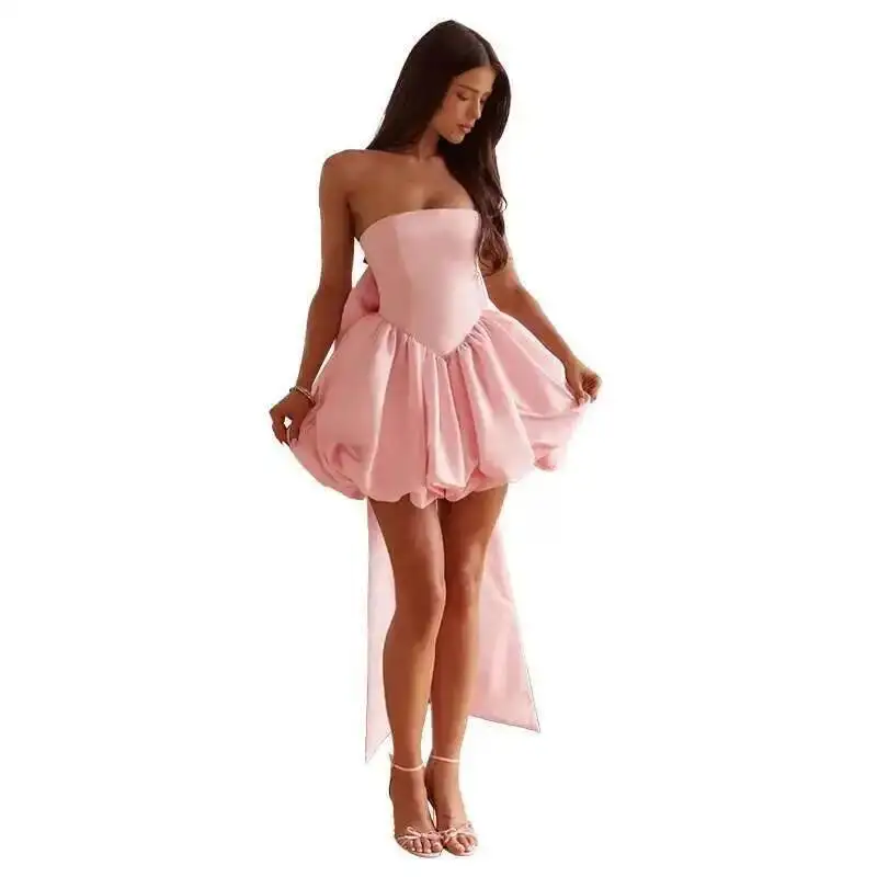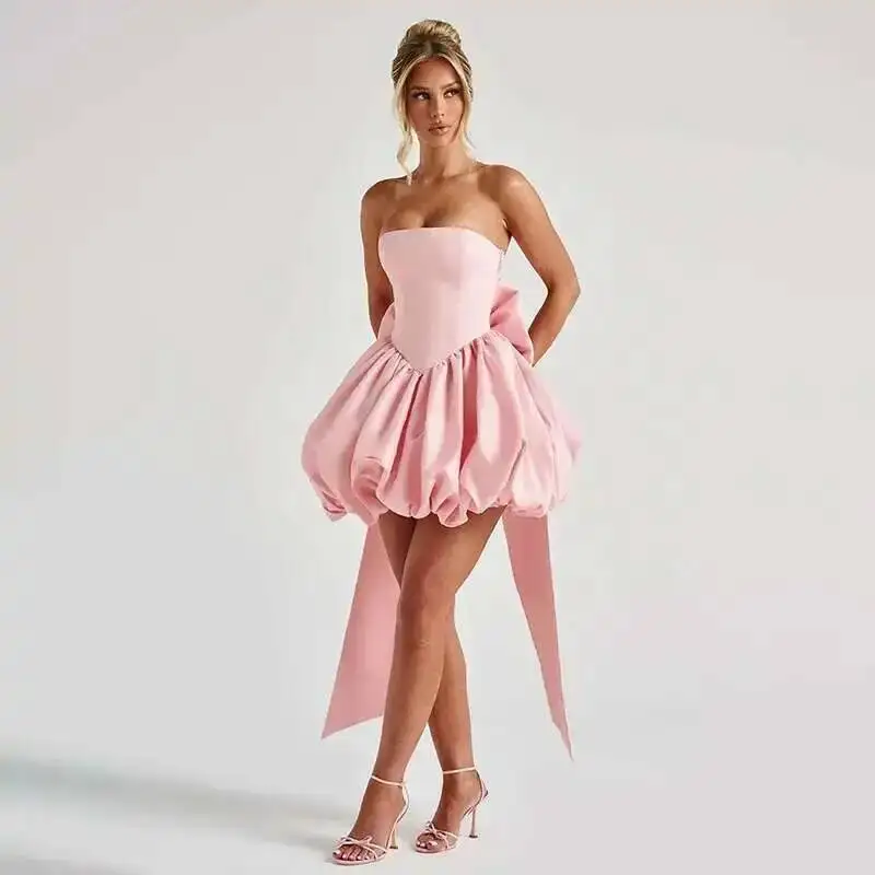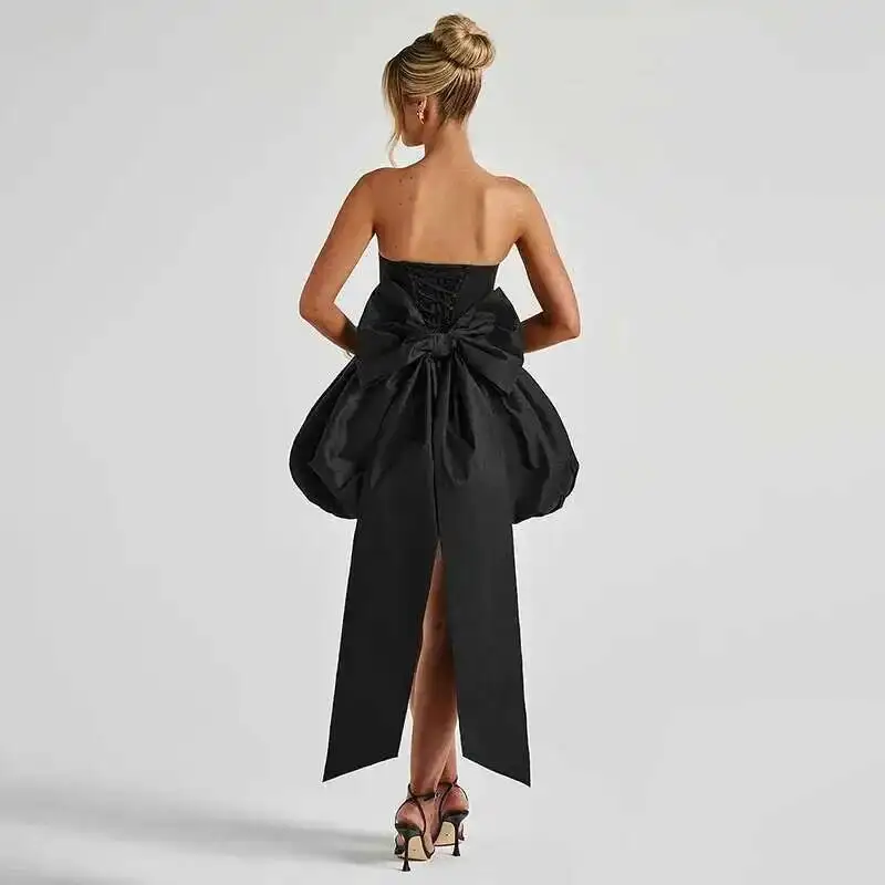 שמלת מסיבה מיני סקסית עם גב חשוף וקשירת קשת לנשים, שמלת קיץ אביב 2025 עם חגורת מותן וגזרת A-line