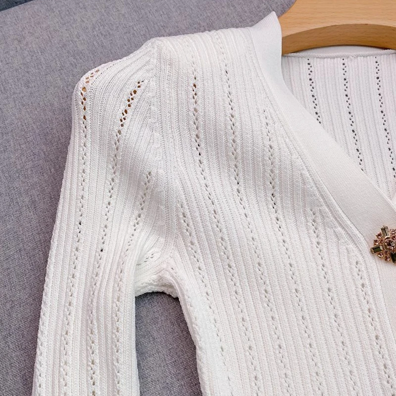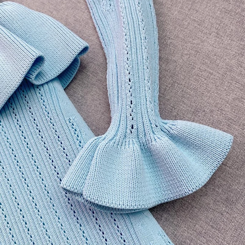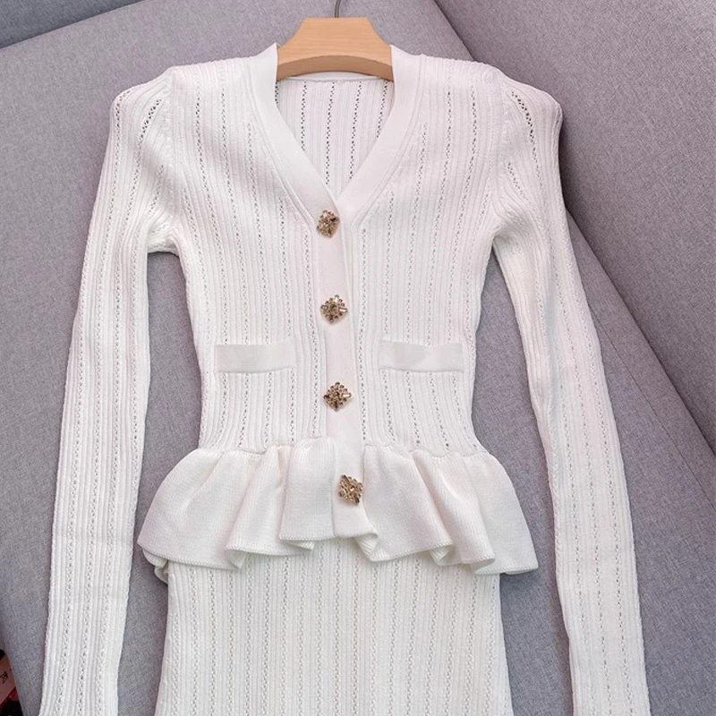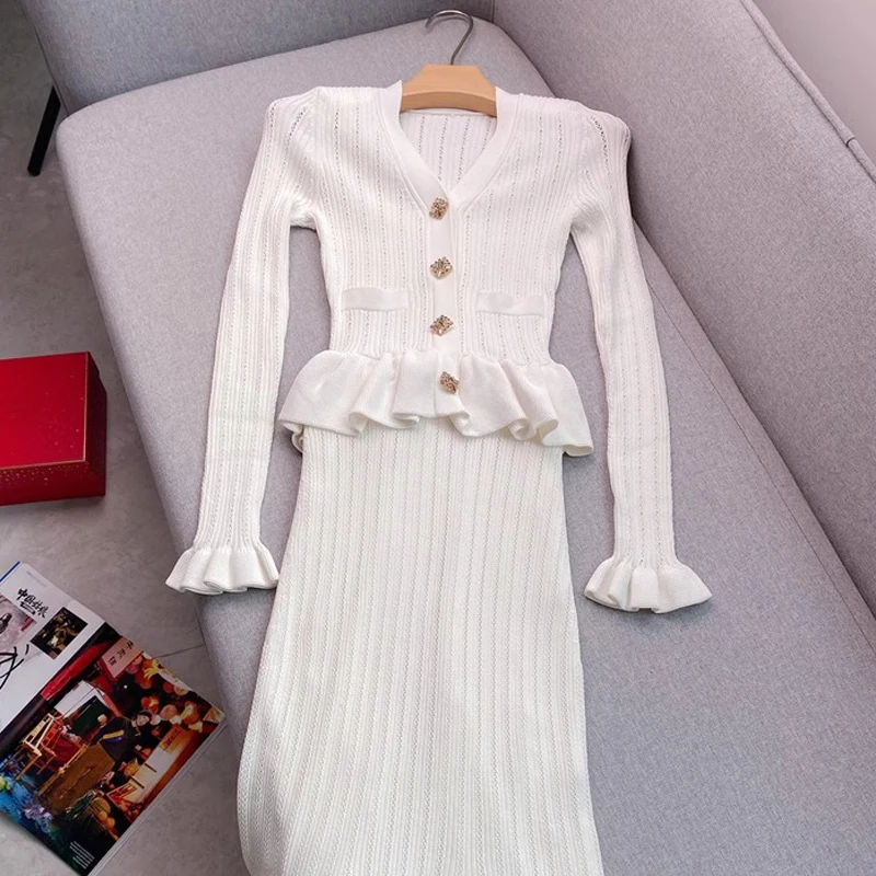 שמלת מקסי אחת מותג YuooMuoo בסגנון אופנה לנשים, צווארון V אלגנטי, שוליים מפונפנים, מותאמת למותן, שמלת סוודר בודיקון למסיבות