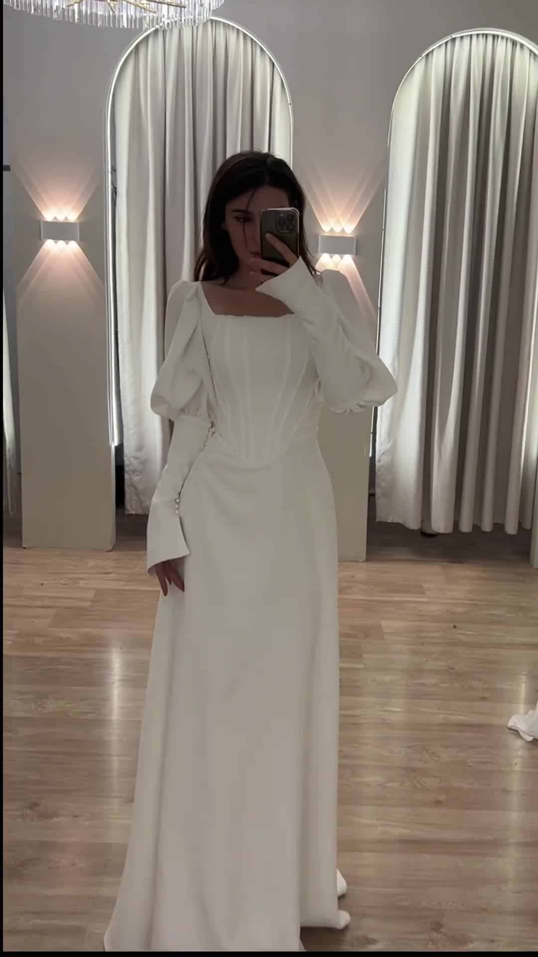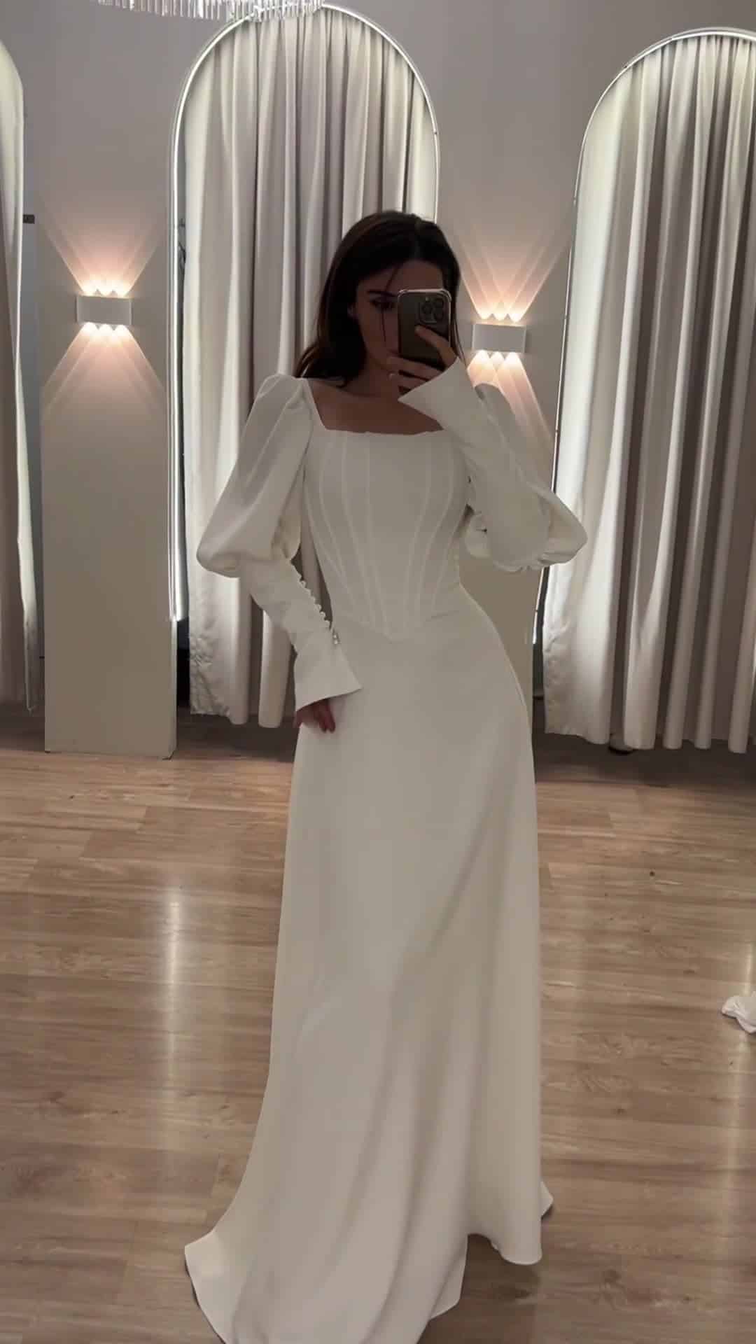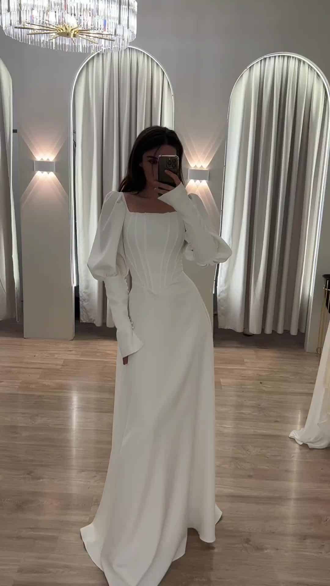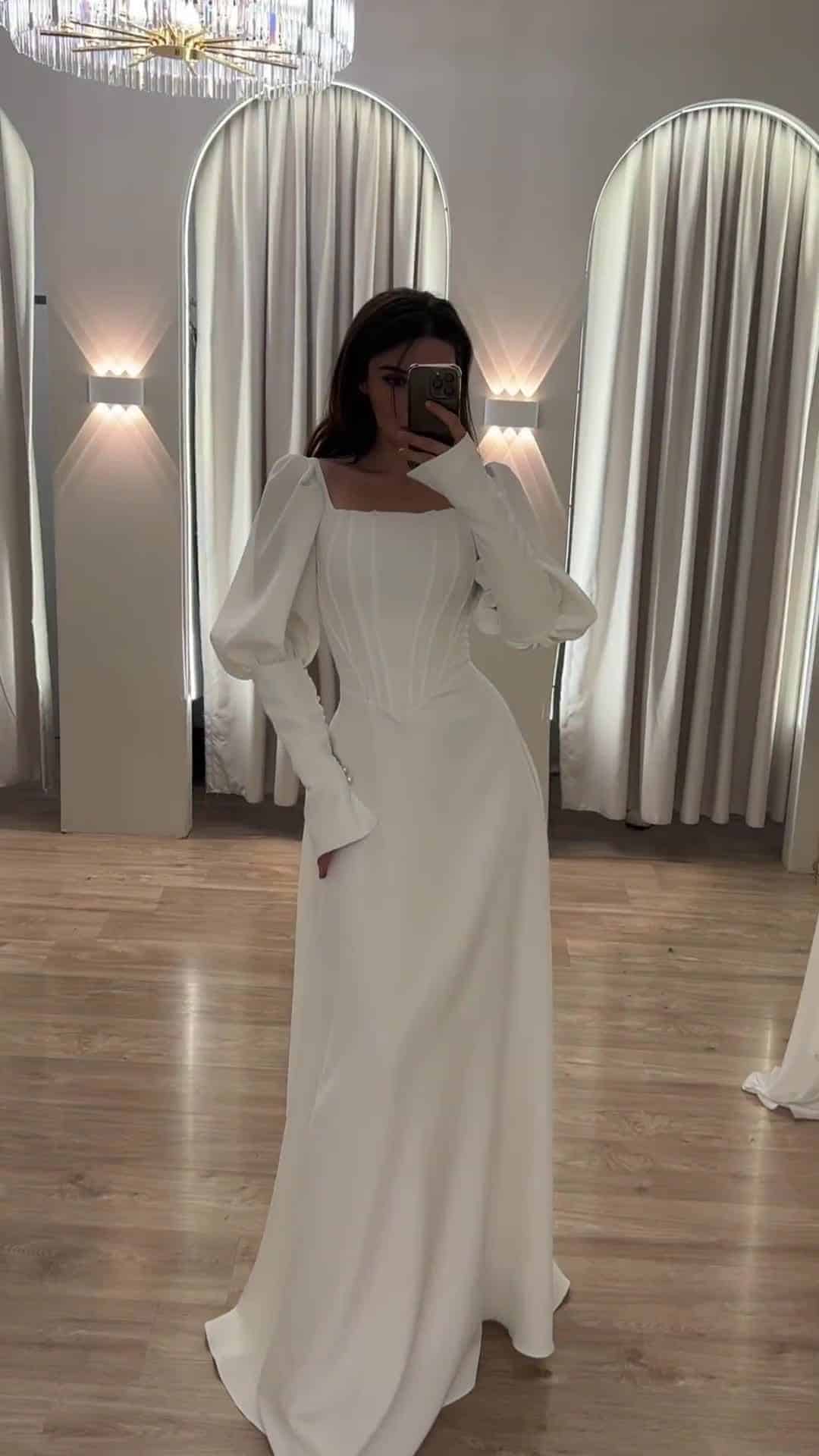 שמלת מקסי, בגזרת A שרוולים נפוחים. למראה אלגנטי, יוקרתי וצנוע.