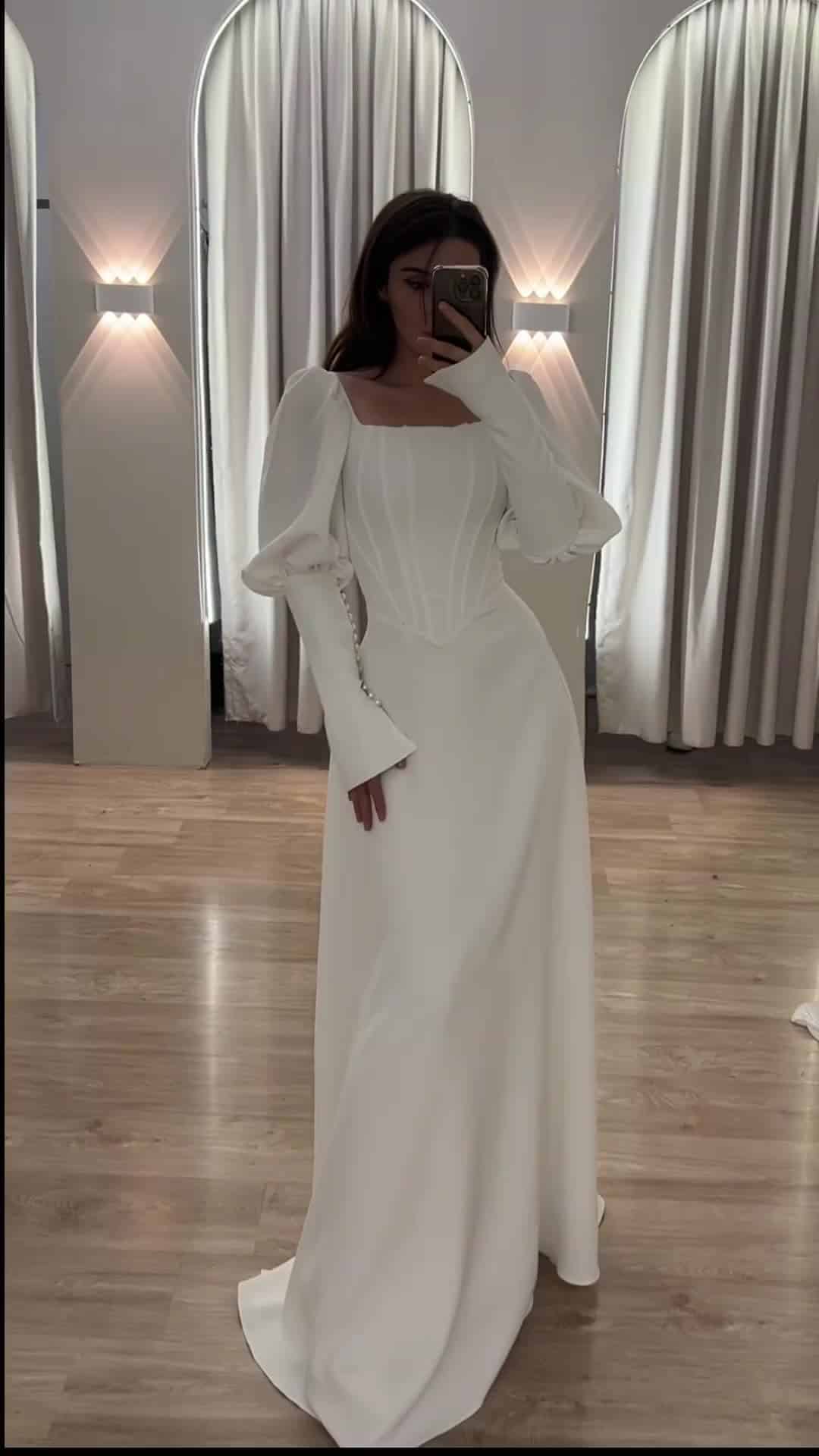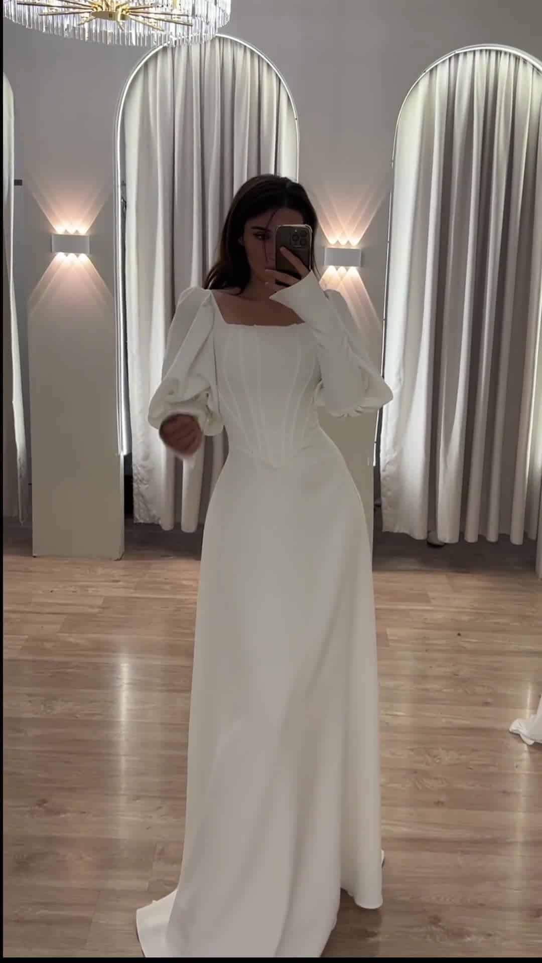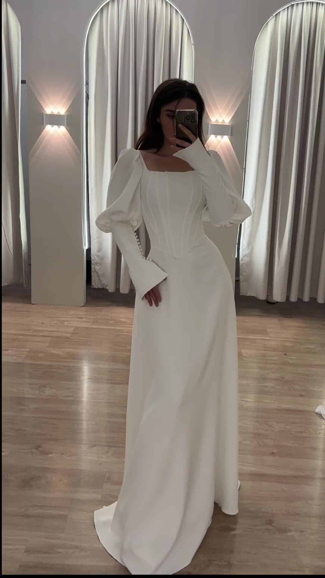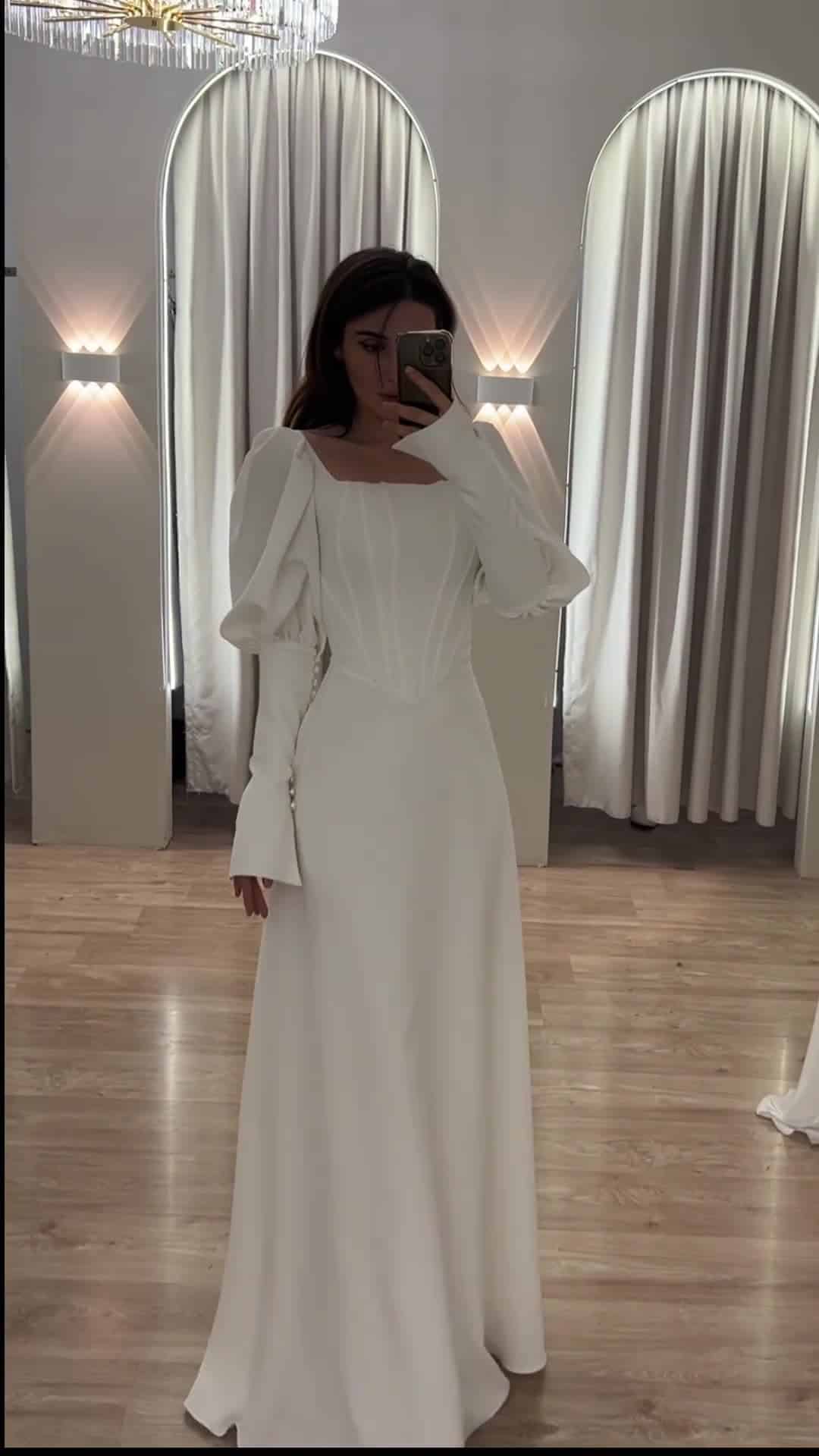 שמלת מקסי, בגזרת A שרוולים נפוחים. למראה אלגנטי, יוקרתי וצנוע.