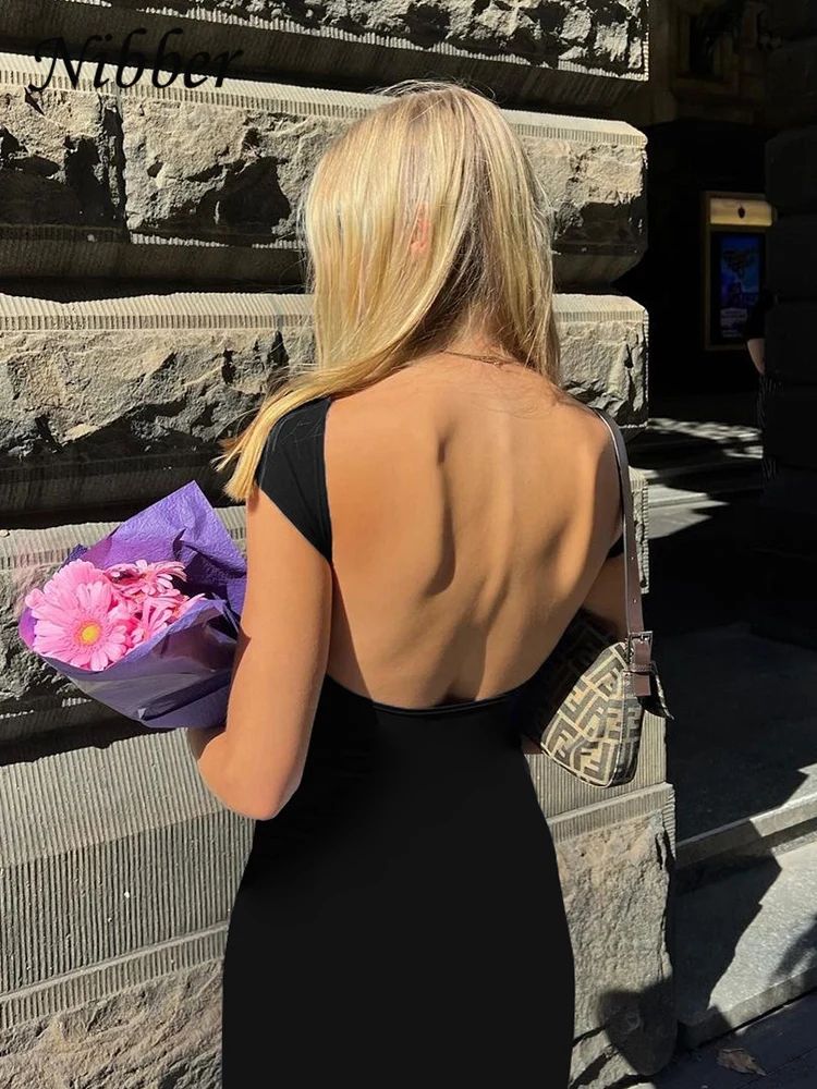 שמלת מקסי סולידית סקסית עם גב חשוף לנשים, אלגנטית, צמודה, שרוול קצר, שמלות ארוכות לנשים, (משלוח חינם)