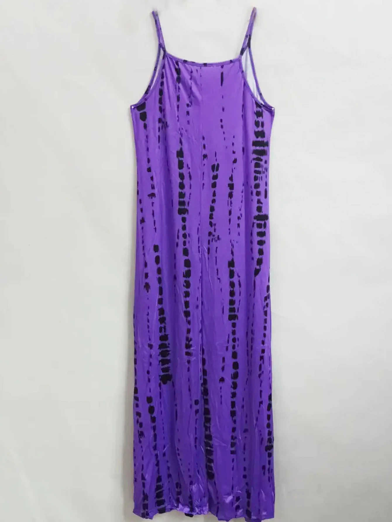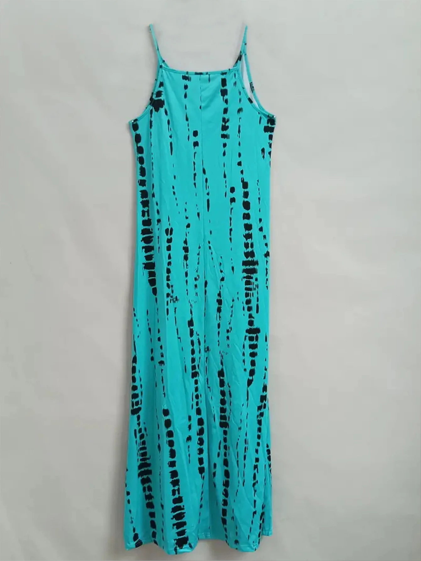 שמלת מקסי ספגטי מודפסת עם צווארון V רחב לנשים לקיץ ולחופשה בחוף