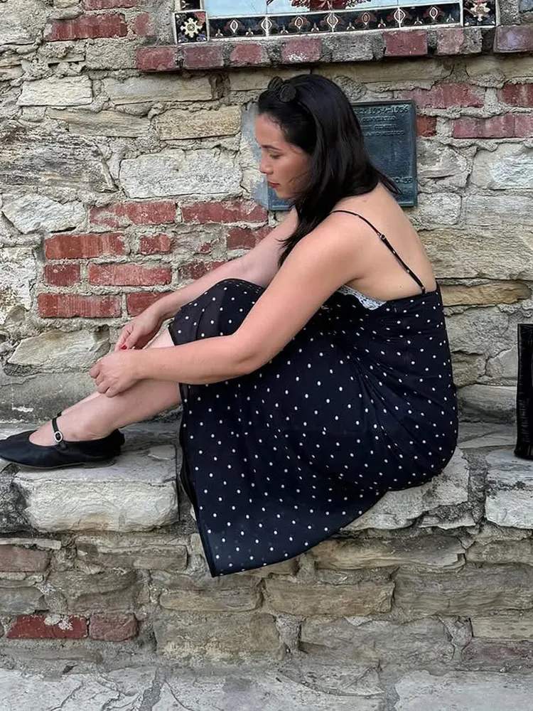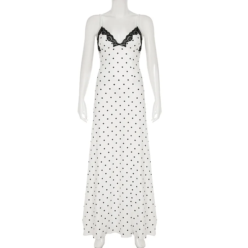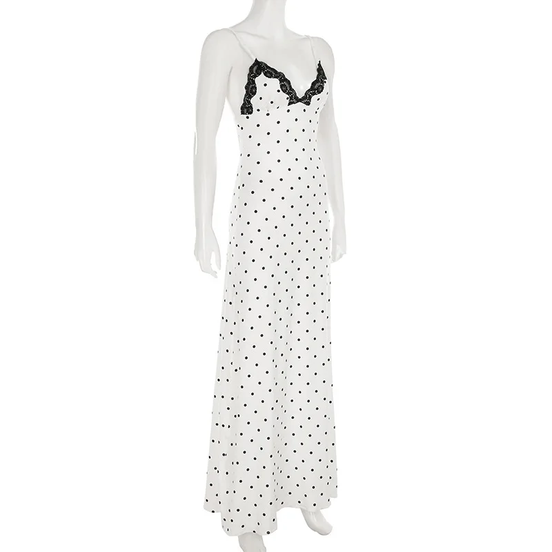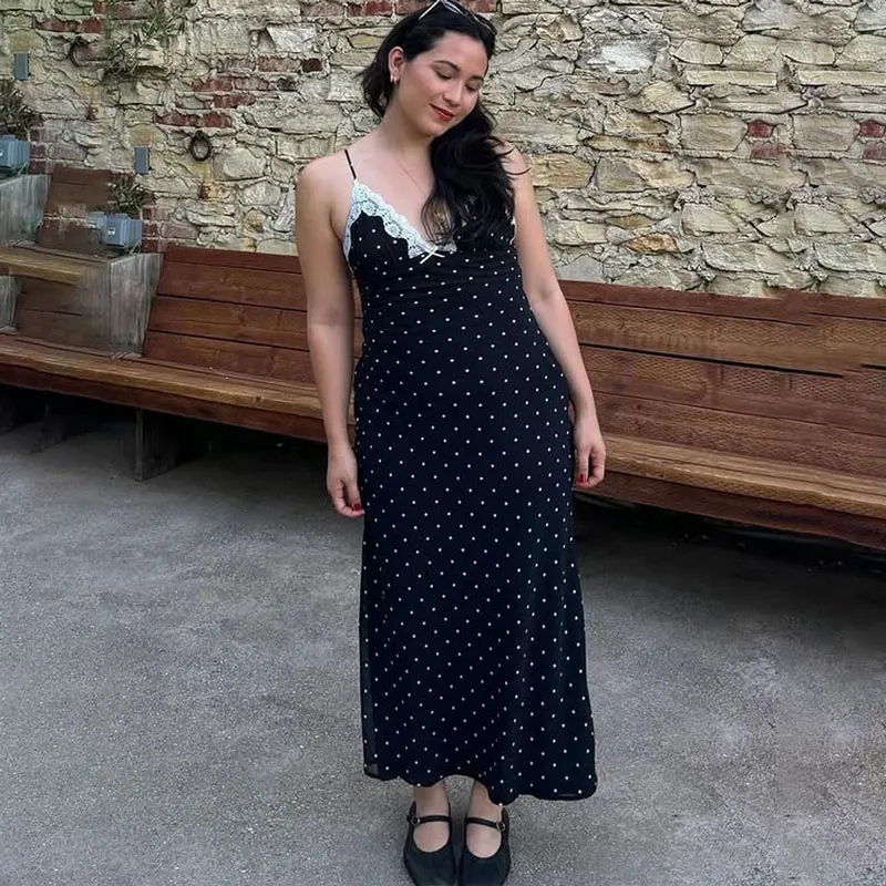 שמלת מקסי עם צווארון V משולבת תחרה (משלוח חינם)