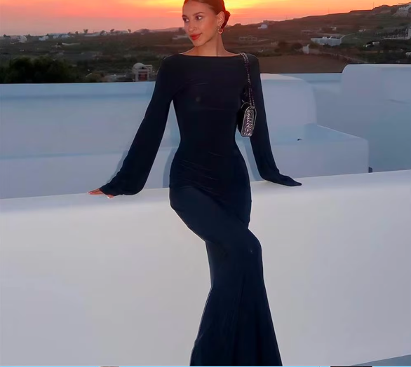 שמלת נשים בסגנון אופנתי עם שרוולים ארוכים (משלוח חינם)