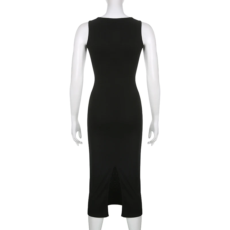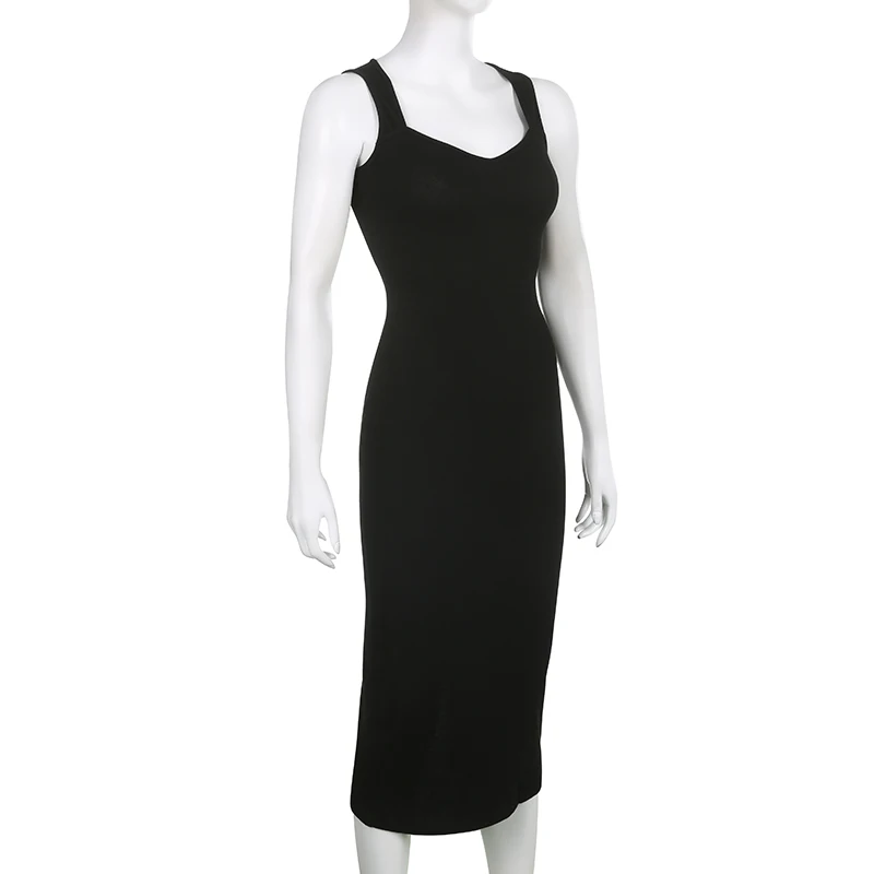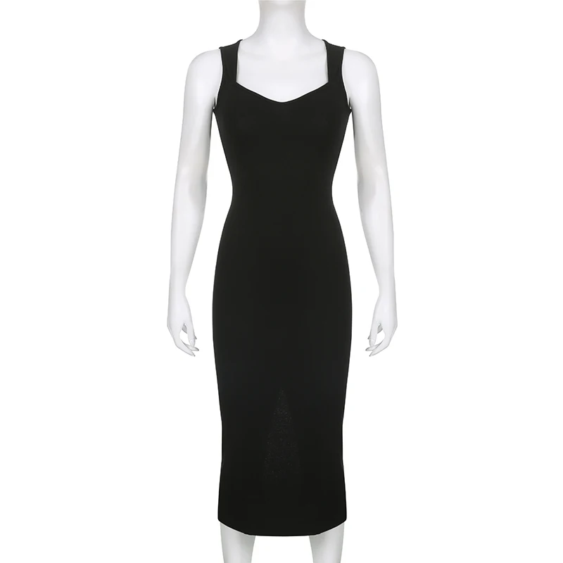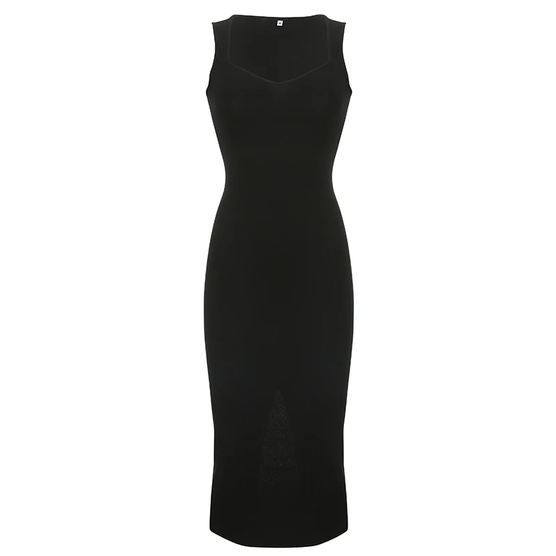 שמלת סריג בסיסית עם מחשוף ריבועי וללא שרוולים (משלוח חינם)