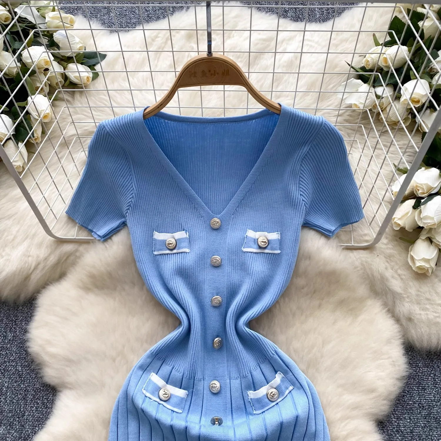 שמלת סריג מודרנית ומגניבה עם שרוולים קצרים (משלוח חינם)
