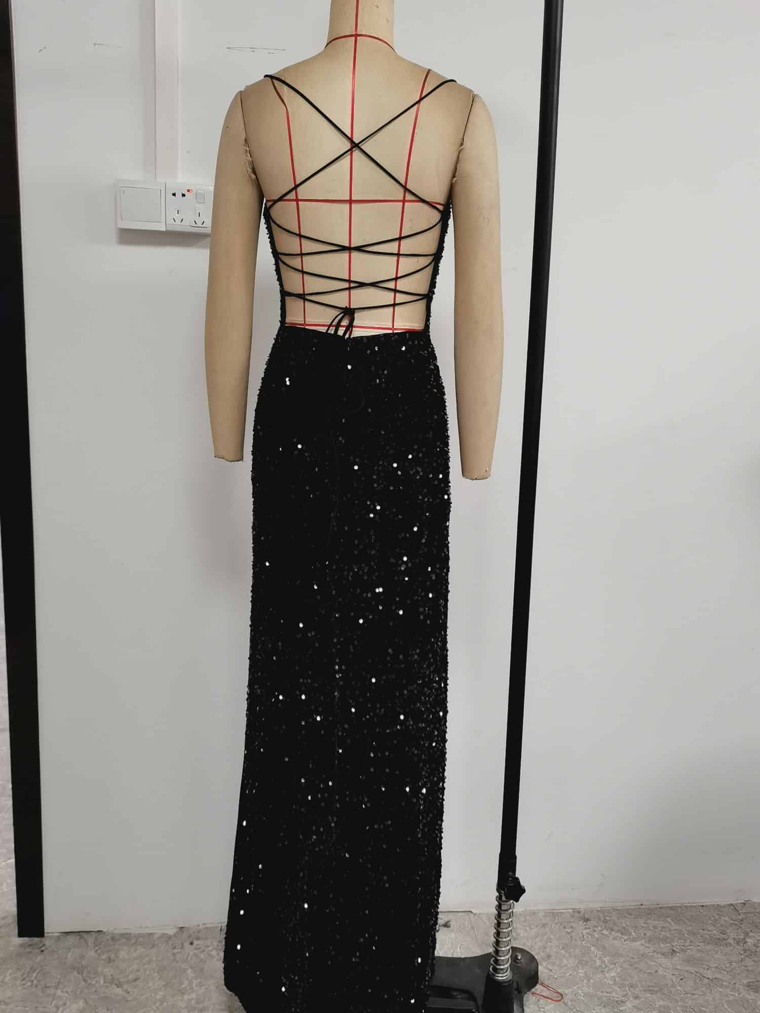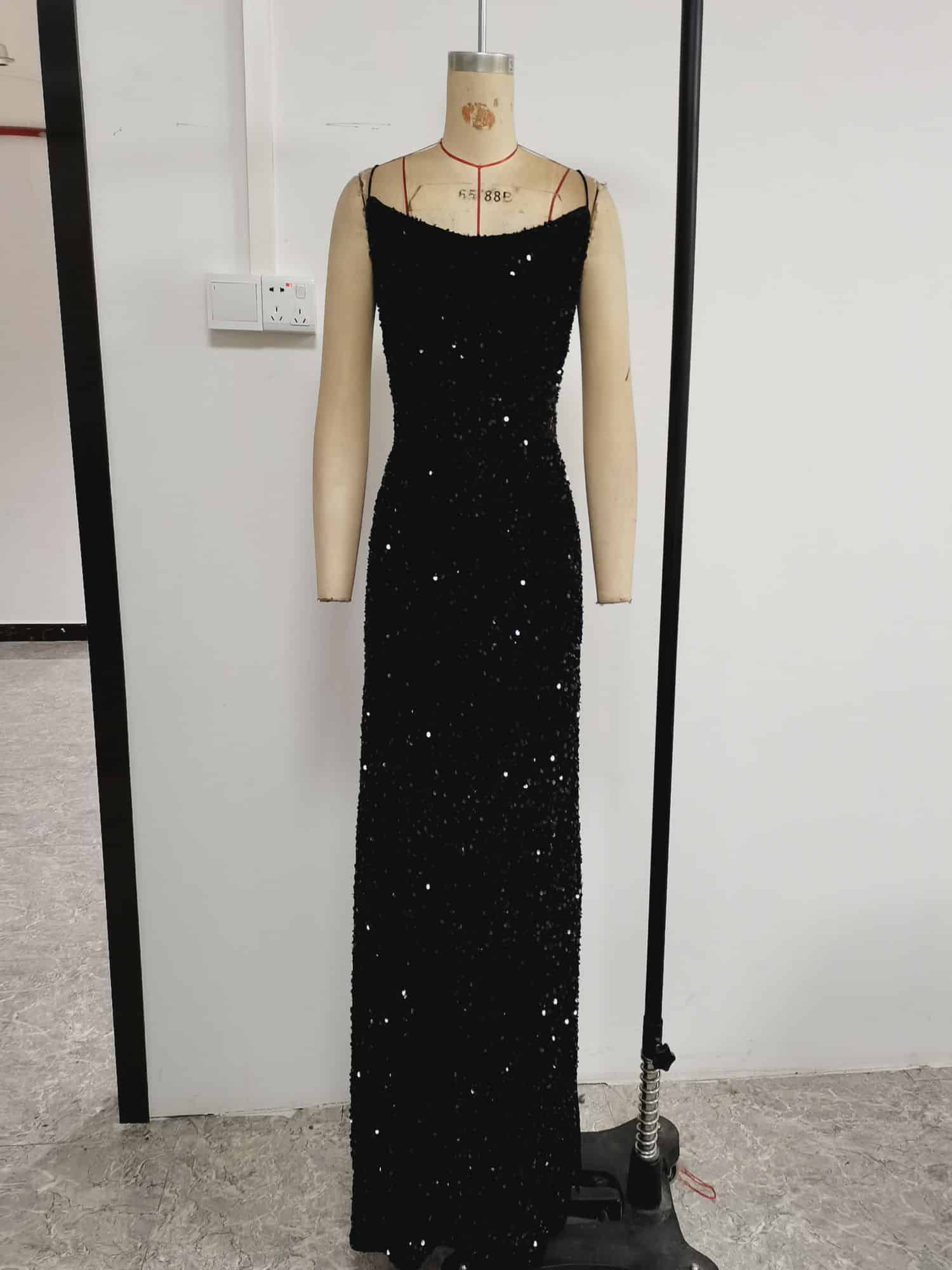 שמלת ערב מקסי פייטים מנצנצת בעיצוב שסעים – סהר