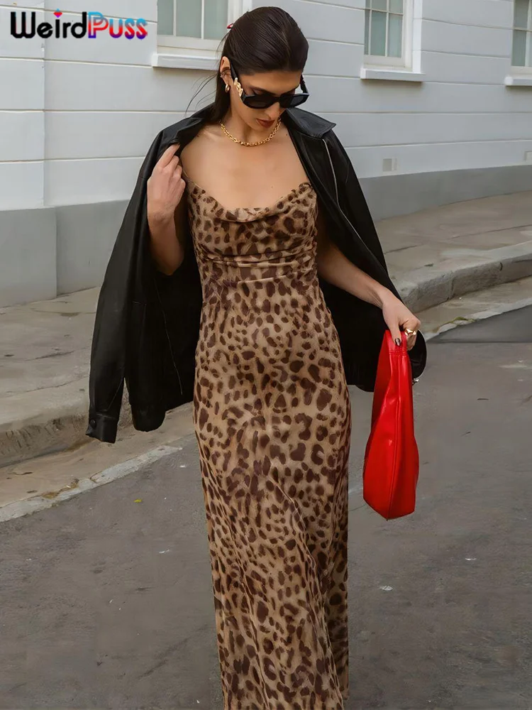 שמלת פרינט ליאופרד מוזרה לאישה, קיץ, מחמיאה, צווארון נדנדה, רצועות ספגטי, גב חשוף, ריפודים, בגדי מסיבה, וסטידוס צמודים (משלוח חינם)