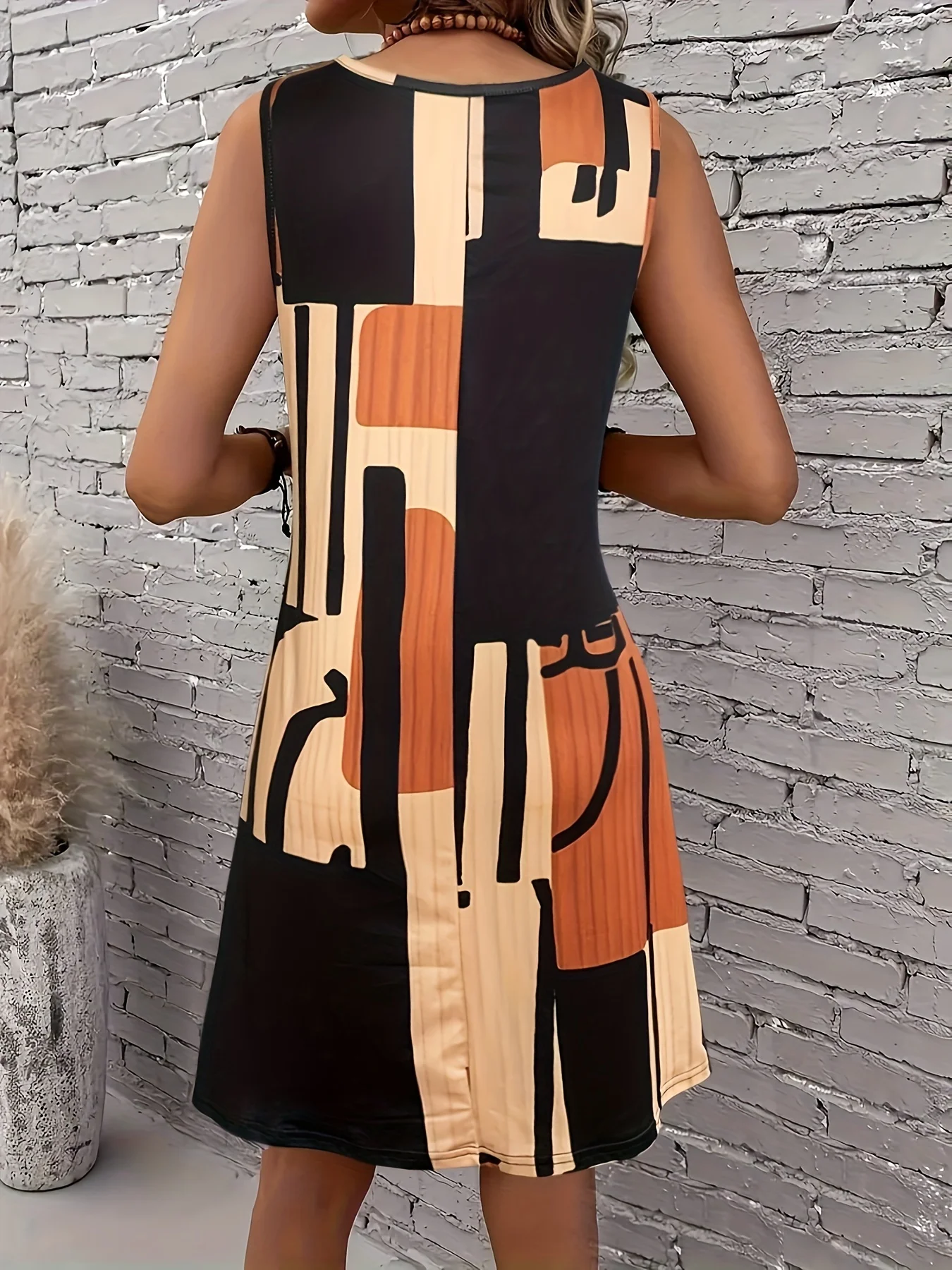 שמלת קיץ וקיץ לנשים עם דוגמה גיאומטרית וללא שרוולים לחופשת הקיץ, שמלות לנשים לקיץ, שמלות מידי בוהמיה לנשים (משלוח חינם)