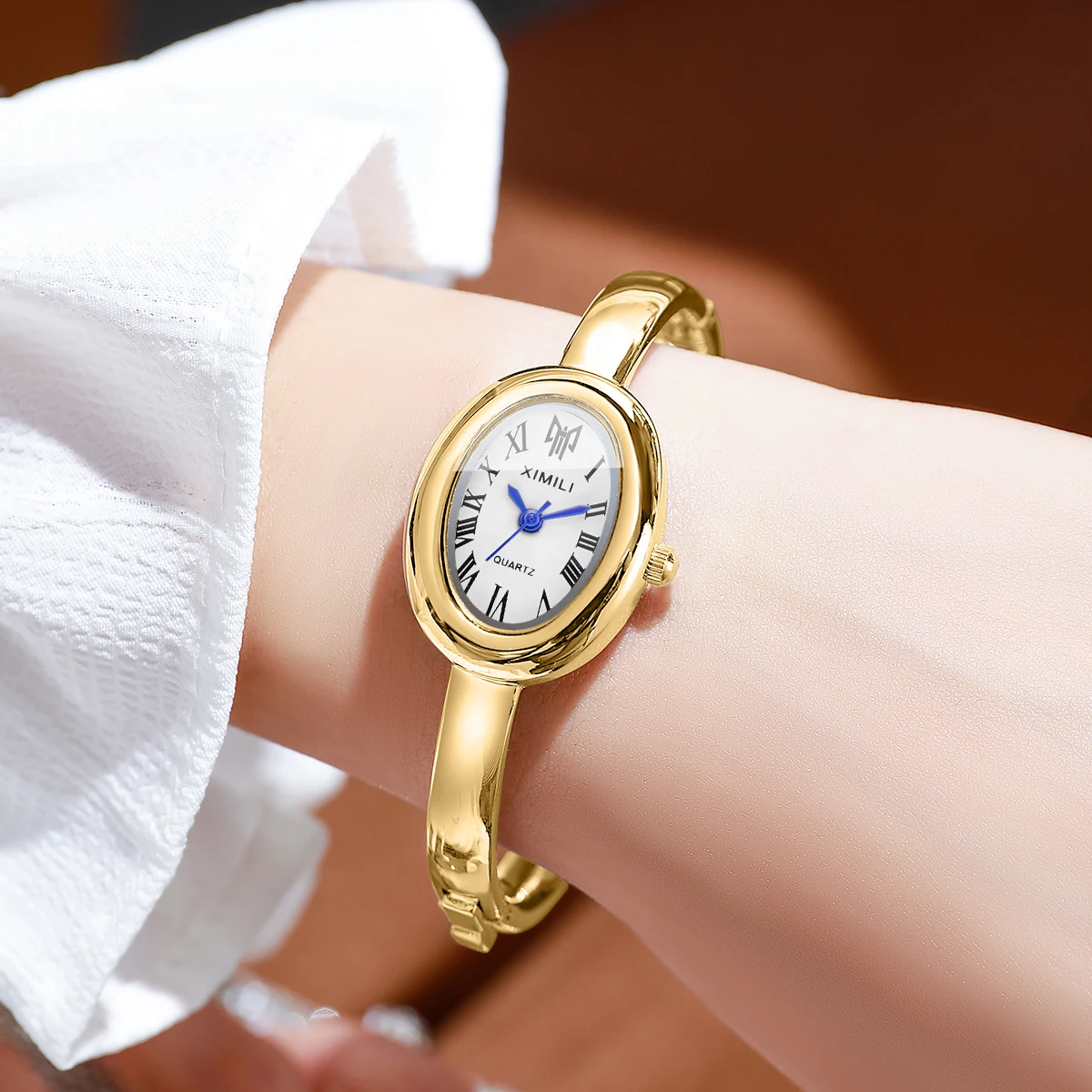 שעון קוורץ לנשים עם מסגרת אובלית מעוצבת ורצועת צמיד אופנתית (משלוח חינם)