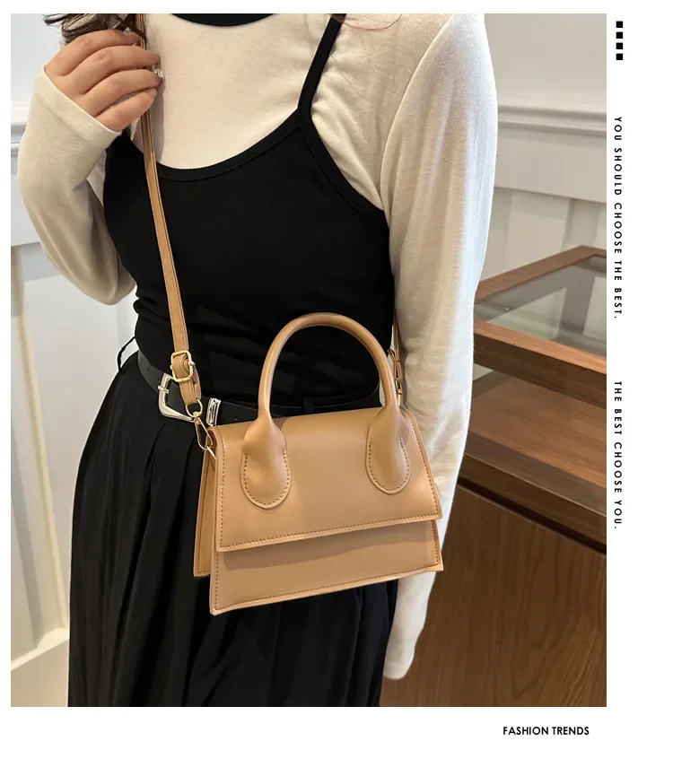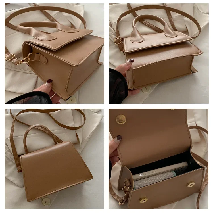 תיק ריבוע קטן בסגנון רטרו צבע טהור לנשים (משלוח חינם)